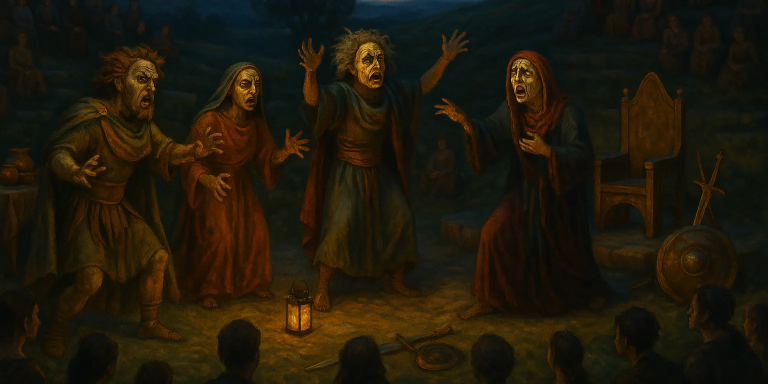 In the first act, Xantates consults the Oracle of Dirfyos on Macris, seeking guidance for his next campaign. Instead, he is warned that his immoderation will bring about his ruin, and that he must learn balance in all things. Scorning the Oracle's counsel, Xantates returns home to find guests - neighboring kings who have come to speak of peace, and whom his wife has welcomed to celebrate the feast of Kērialia, the bawdy festival of the Kaphtori that honors the passing of The Candles overhead. He enters into a scene of raucous merriment, only to be enraged by the presence of the other kings and their talk of peace. In fury, he drives them from his hall with a scourge, hurling imprecations at both his guests and his household for their revelry and for the emptiness of its meaning. Yet when at last all have been cast out, he finds himself confronted by the gods of Chalkós - for in violating the sacred laws of hospitality, he has provoked their wrath.