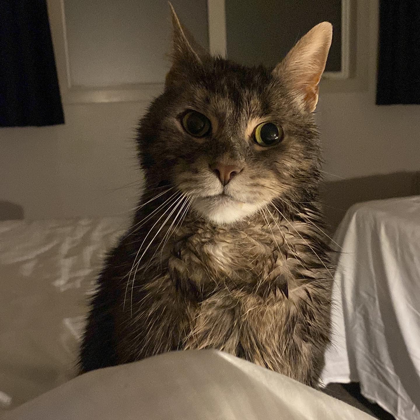 Free spot - please enjoy this photo of my cat after I had to sneak him into a hotel room and give him a shower.