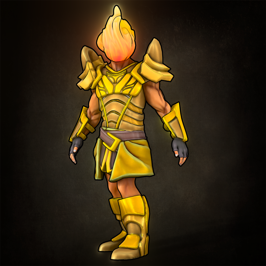 Primus, deity of the sun, the shining one, has appeared before mankind as a mighty being in gleaming, golden plate mail armor. His true face cannot be seen as it is hidden by the brilliance of the sun-like shining aura that radiates a blinding light where his head should be. Primus is the creator of many good things, a supporter of those in need, and an adversary of all that is evil. He is one of the Four Pillars of Creation, father of many of the other gods, and is considered to be the patriarch of The Twelve. Primus is also credited with the creation of the humans.