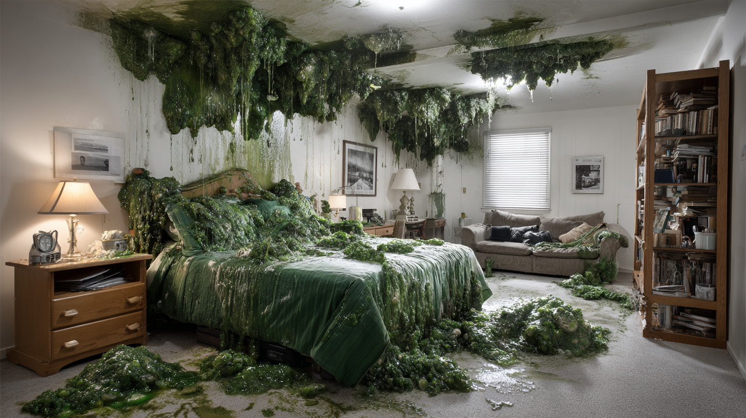 The dream began with wetness. Not water—something thicker, wrong. The substance seeped under the door of a room you recognized but couldn't place, flowing upward in defiance of gravity, leaving trails that smoked and hissed where they touched.