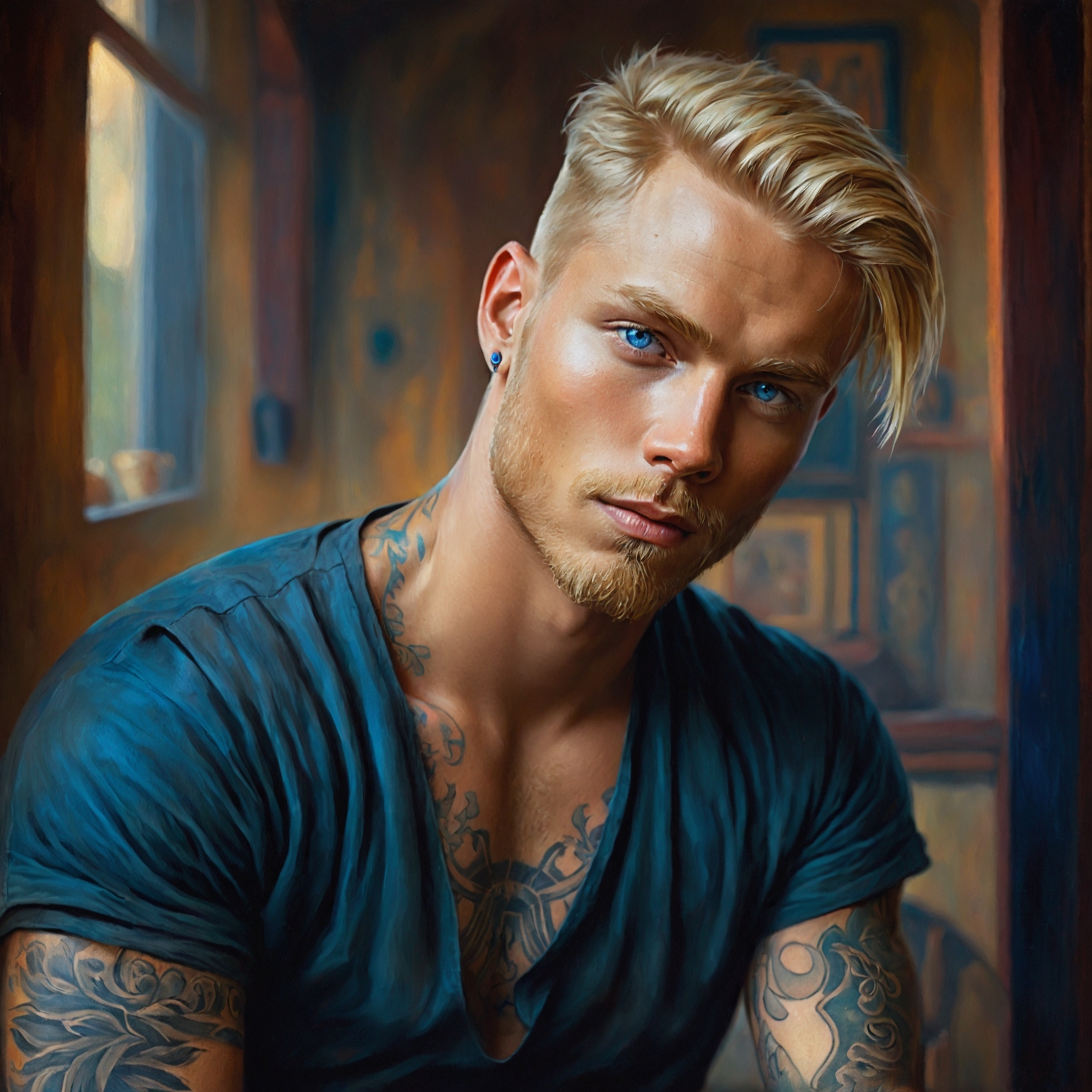 Einar, the unknown Ulfsson, is the shadowed figure of a family legacy he's only just beginning to understand. Bearing the unmistakable physical traits of his father Randulfr, with short blonde hair that captures the very essence of his lineage, Einar's presence is as striking as it is unexpected. His piercing eyes, reminiscent of the Ulfsson blue, hold a storm of emotions—anger, resentment, and a yearning for belonging that has gone unfulfilled.
