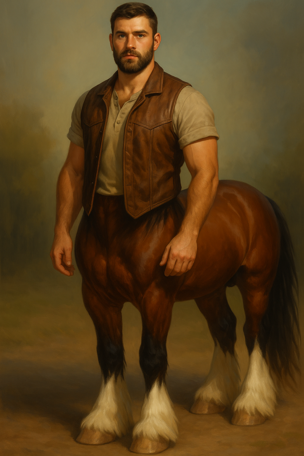 Ronan possessed the distinctive build of a Clydesdale centaur—taller, broader, and more powerful than most, with a presence that turned heads even in the busiest market square. His strength was matched by a patient, steady temperament, though those who mistook his quiet nature for passivity quickly learned that his resolve was as unyielding as the mountains on the ranch’s northern border.