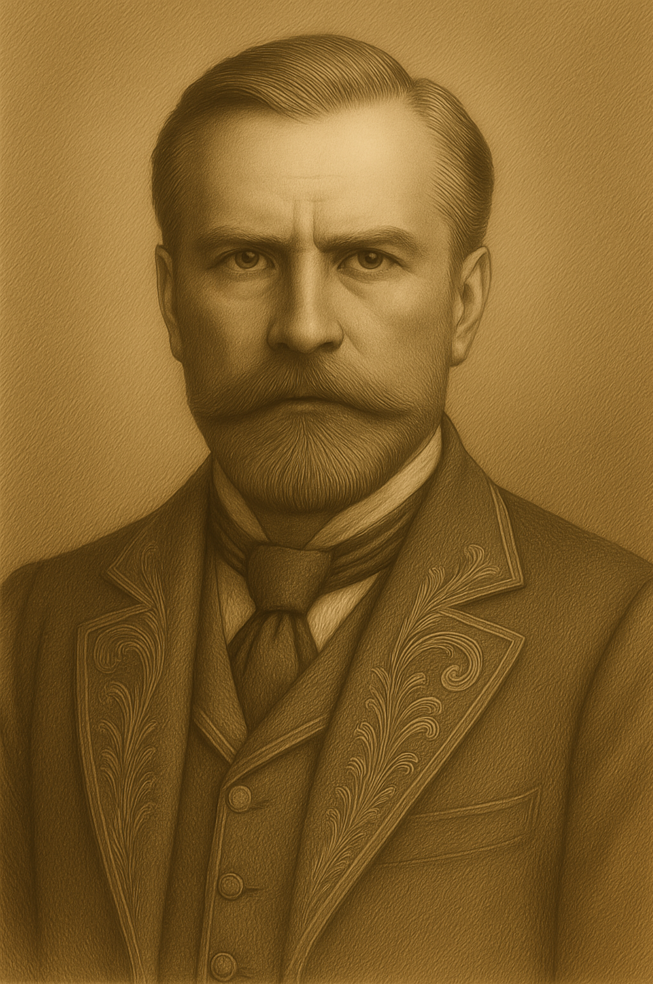 Broderierna på hans rockar är subtila hot, varje knapp symboliserar kontroll. Han klär sig som en kung vars tron är byggd av gamla löften och färskt blod. Hans ringar glittrar inte, de stirrar.
