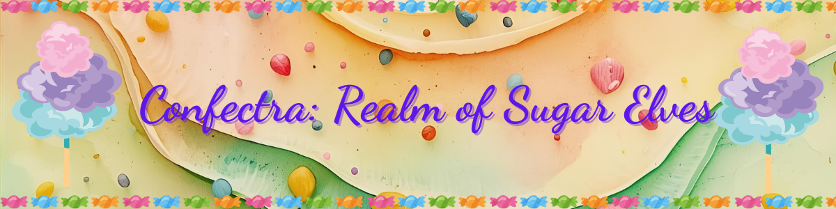 Unlike the elves of Selenia, the Confectra are touched by sugar itself. Their skin shimmers in pastel shades, some marbled with swirling, galaxy-like ribbons of candy hues. Birthmarks and freckles scatter across them like tiny sprinkles. Their hair ranges from wisps of spun cotton candy to long, glossy strands like pulled sugar.