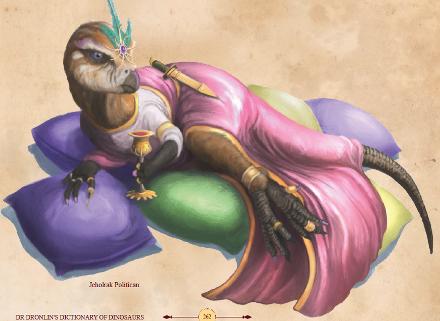A humanoid Saurian species descended from a small sub-clade of neornithischian dinosaurs, named for their resemblance to Jeholosaurus and other small, herbivorous dinosaurs. They rarely grow to more than four feet at the shoulder, and most hover around three feet. In comparison to the Errant's long, streamlined feathering, Jeholrak's feathers tend to be short and dense, appearing like fur from a distance, and are usually less saturated colors better for camouflage. They live 50-60 years, and have clutches of five to six eggs at a time that are cared for by a combination of their parents and elder siblings.