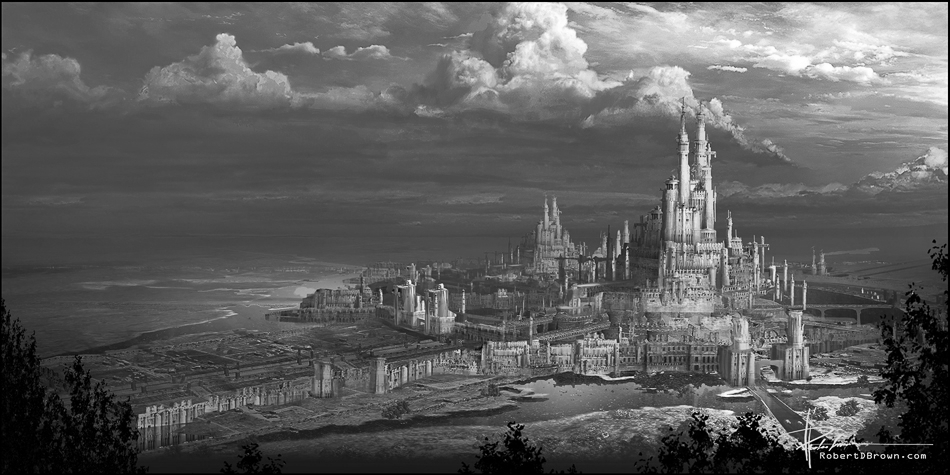 Architecture: The city is characterized by grand, red-capped towers, soaring marble structures, and a profusion of arches, columns, and statues. Its aesthetic is one of sober, martial grandeur, designed to inspire both awe and a sense of unshakable stability.