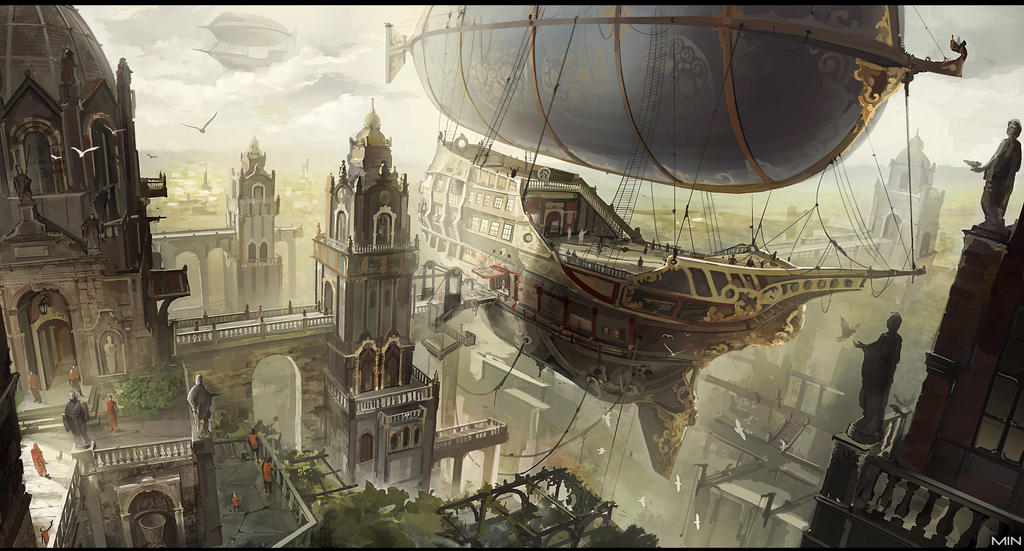 Water-Powered Infrastructure: A key feature of its design is the ingenious use of water from the Copper Bay to power its massive engineering, which transport people and goods between the tiers and to and from the airship docking spires.