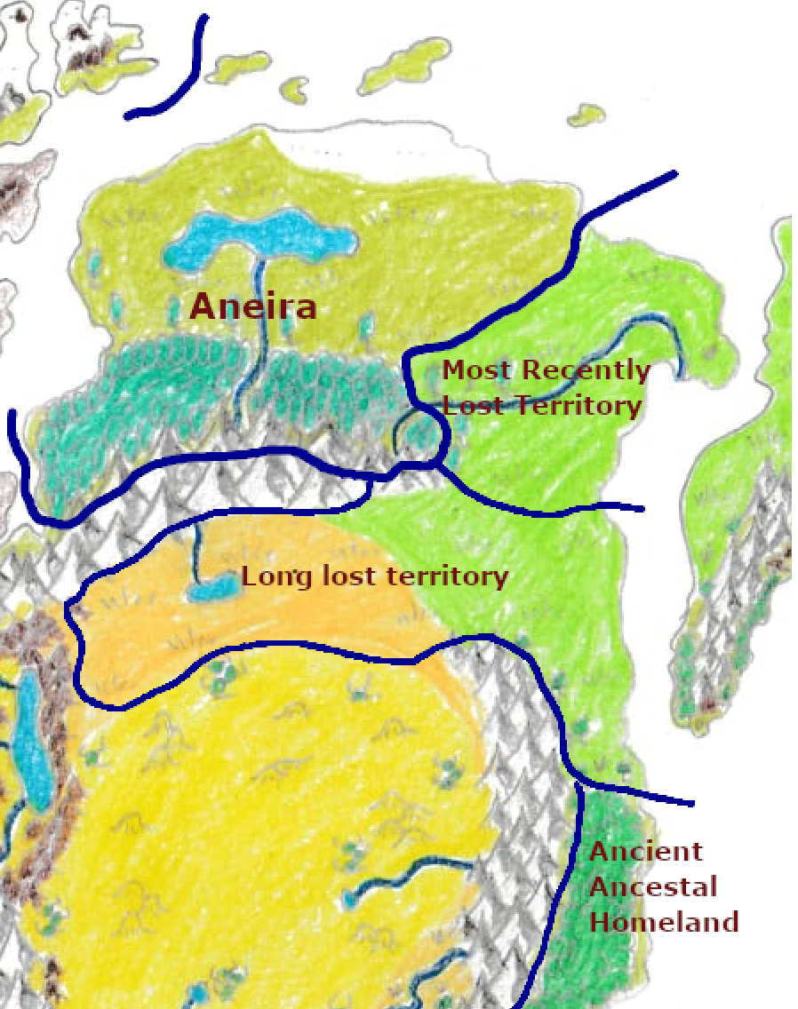 In the far northeast, you will find the Aneira, they are a group of nomadic warg riders, who live by herding llamas, hunting yaks, and gathering nuts, berries, and mushrooms in the forest. They have since been forced to become partially urbanized, and they have also become a subject of the much more populated Yeno, to their south, which has seen their numbers dwindle even further. It has gotten so bad that the majority of the ethnic Aneira population now lives in the city of Vilyanor, which was one an Aneira fishing town, before it was conquered by Yeno.