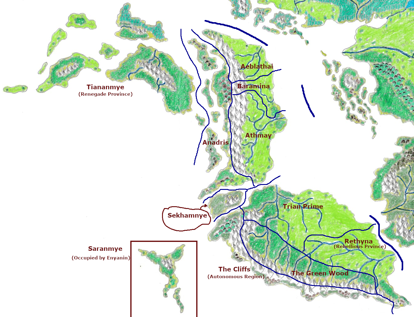 Three of them split Quianmye among them, based on where navigable rivers reach. These are Aeblathai, Baramina, and Athmay.