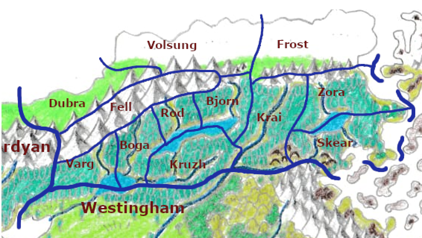 There are some larger settlements tho, they owe this to trade, and especially to one of the true dendorian pastimes, lake fishing.