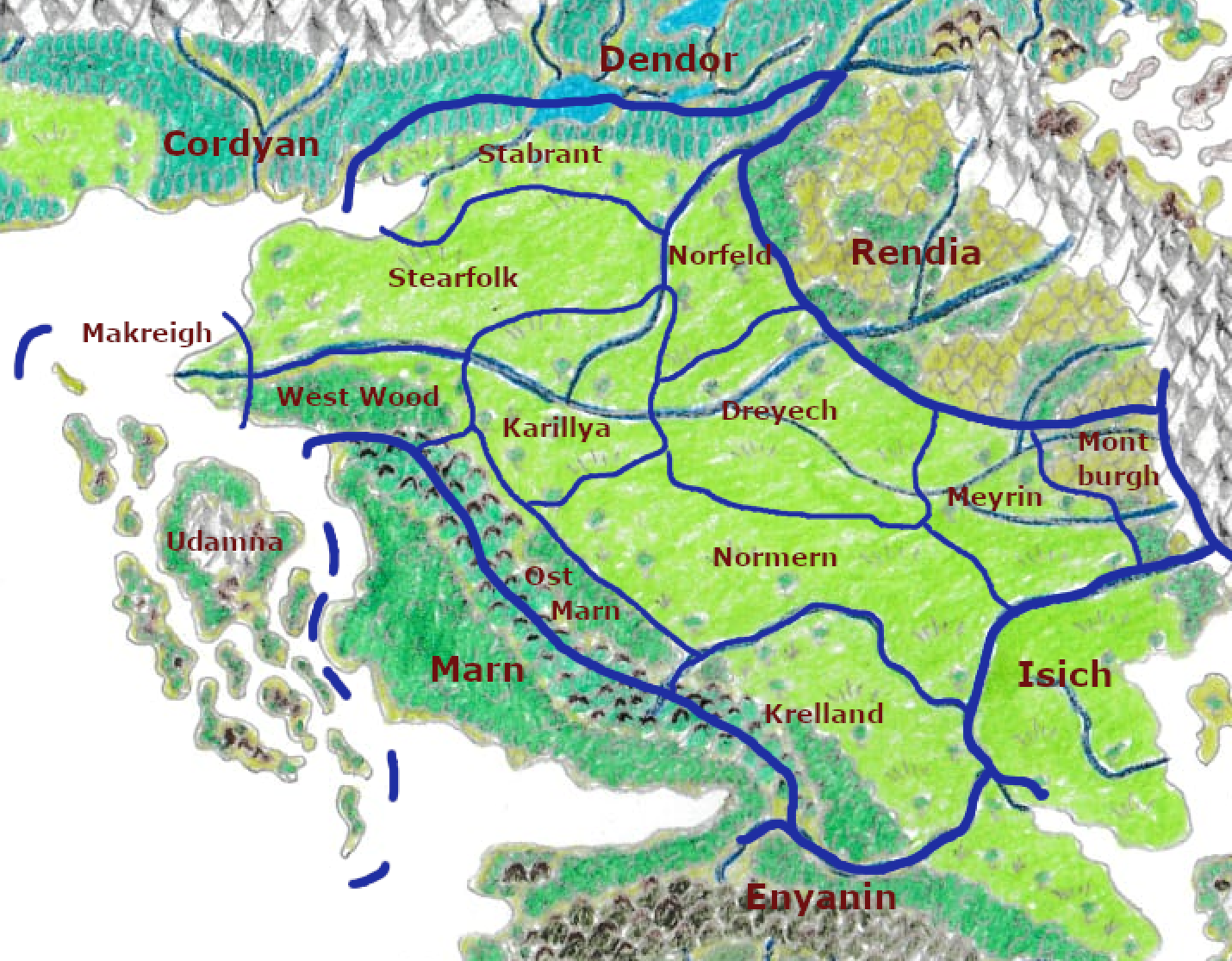 There are six duchies still in the kingdom, which are the duchies of Meyrn, Normern, Ost Marn, Westwood, Stearforlk, and Norfeld.