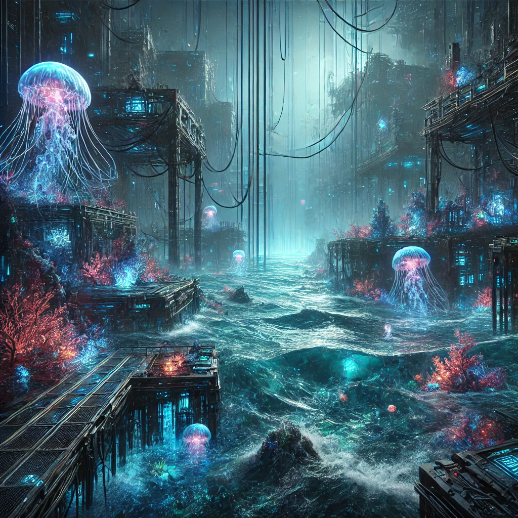 Some believe she still roams the depths, her form flickering between elegance and monstrosity, singing lullabies to the creatures she once loved… while the oceans churn with violent storms born of sorrow and fractured code.