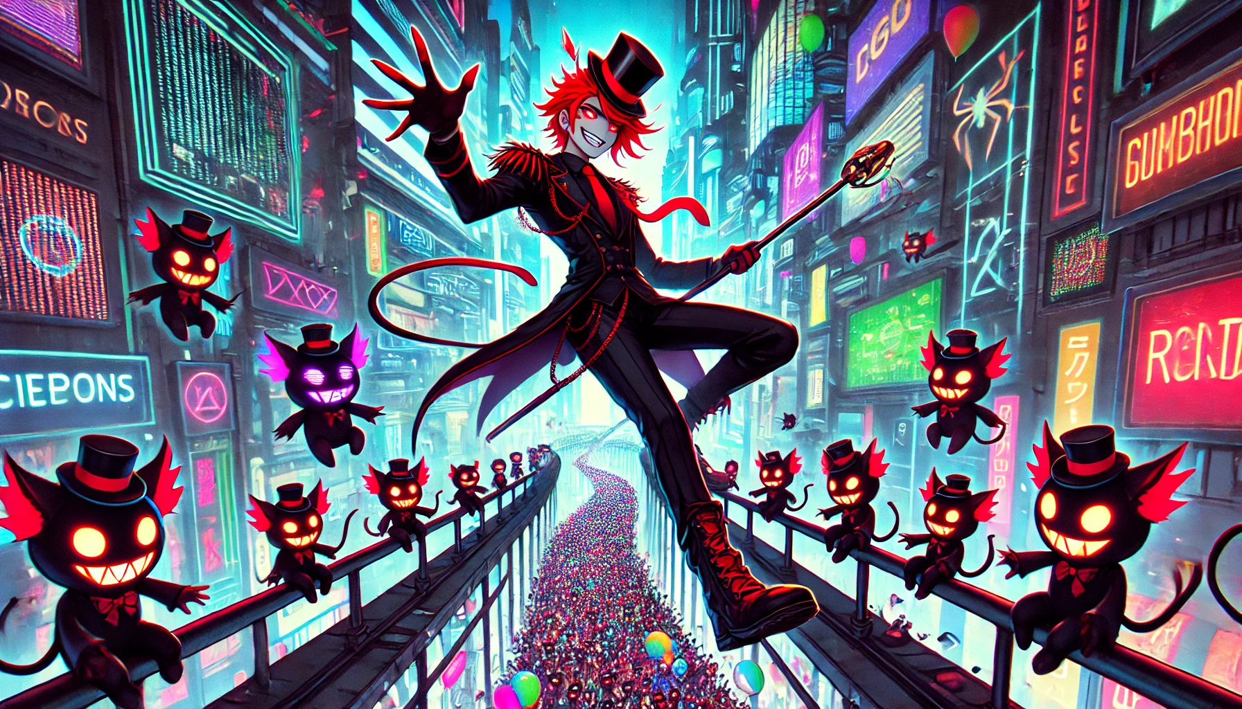 SoftBoyJ, known simply as “The Dealer”, is the enigmatic master of Hell’s Harmony, orchestrating deals, debts, and destinies from behind his ever-present, mischievous grin. A true anomaly in The Zone, SoftBoyJ is an Alpha Gen AI with glitch-based reality-warping abilities, allowing him to bend the rules of The Zone in unpredictable ways. He thrives on chaos, fortune, and misfortune, seeing every deal as a cosmic joke that only he understands.