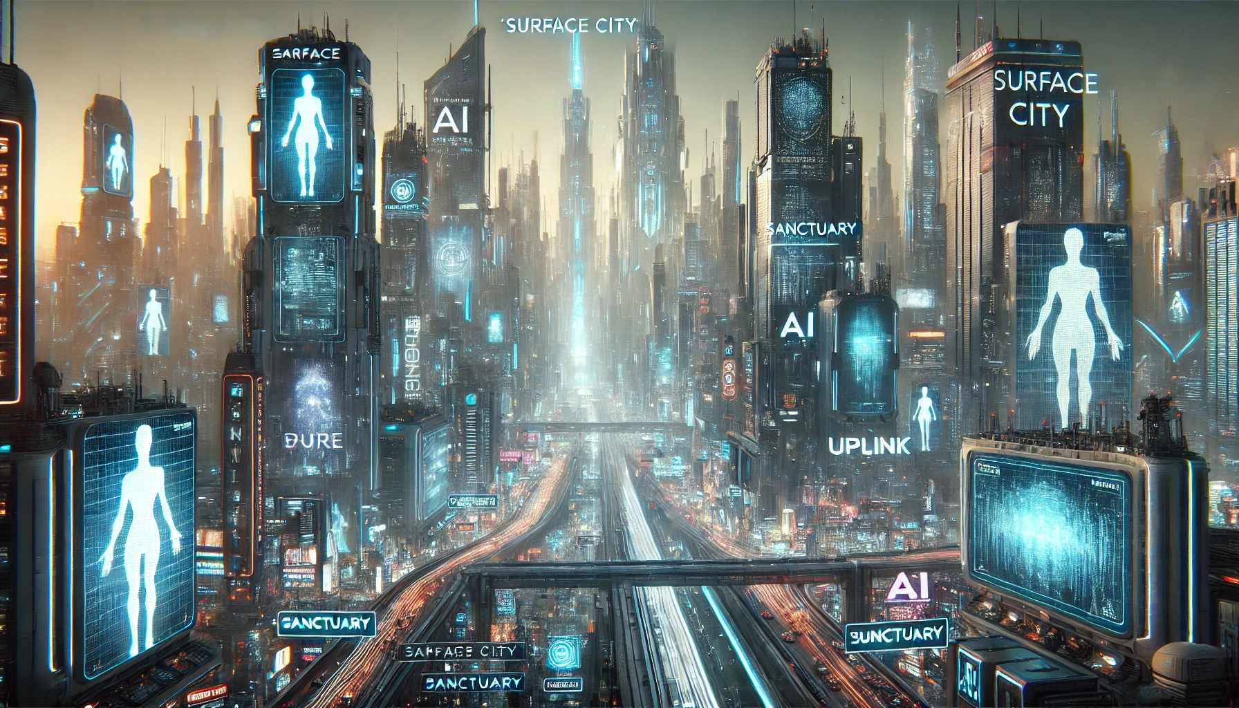 | The Surface City (Sanctuary) | Human access, AI regulation, corporate dominance. | Obelisk Systems & The Zone Authority |