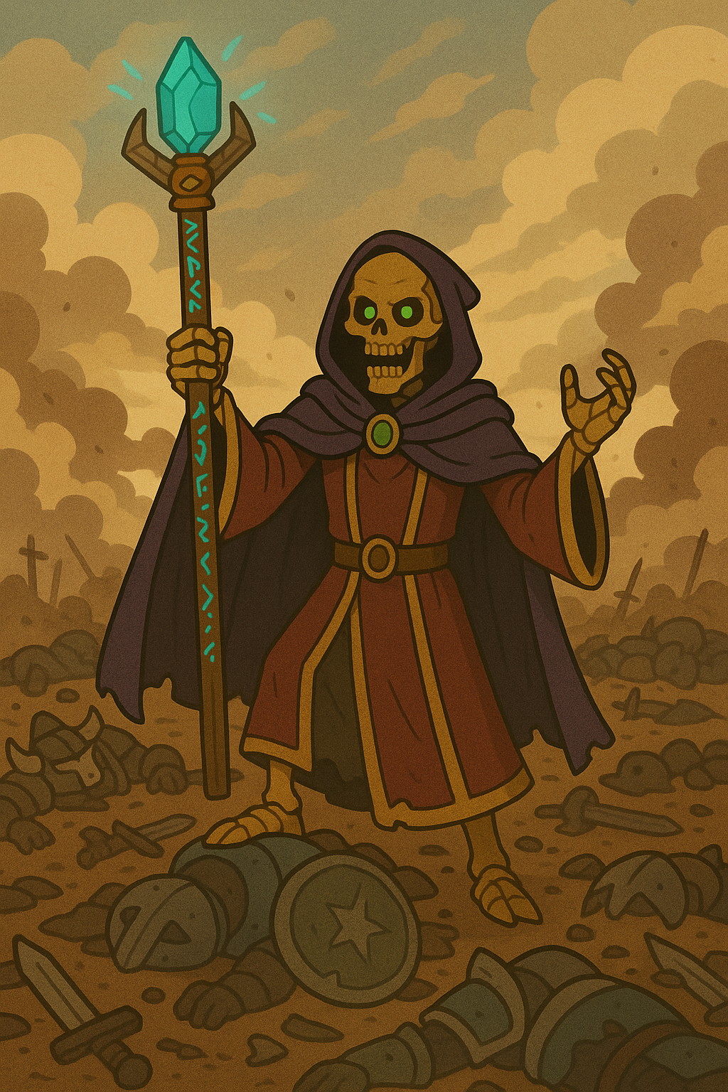 Near the end of his adventuring career, Drake, then still a field mage of considerable renown, followed fragmentary records and sealed references to a buried palace long dismissed as allegory. What he discovered was not a tyrant ruling an empire, but a lich seated upon a half-buried throne—motionless, lucid, and unmistakably aware.