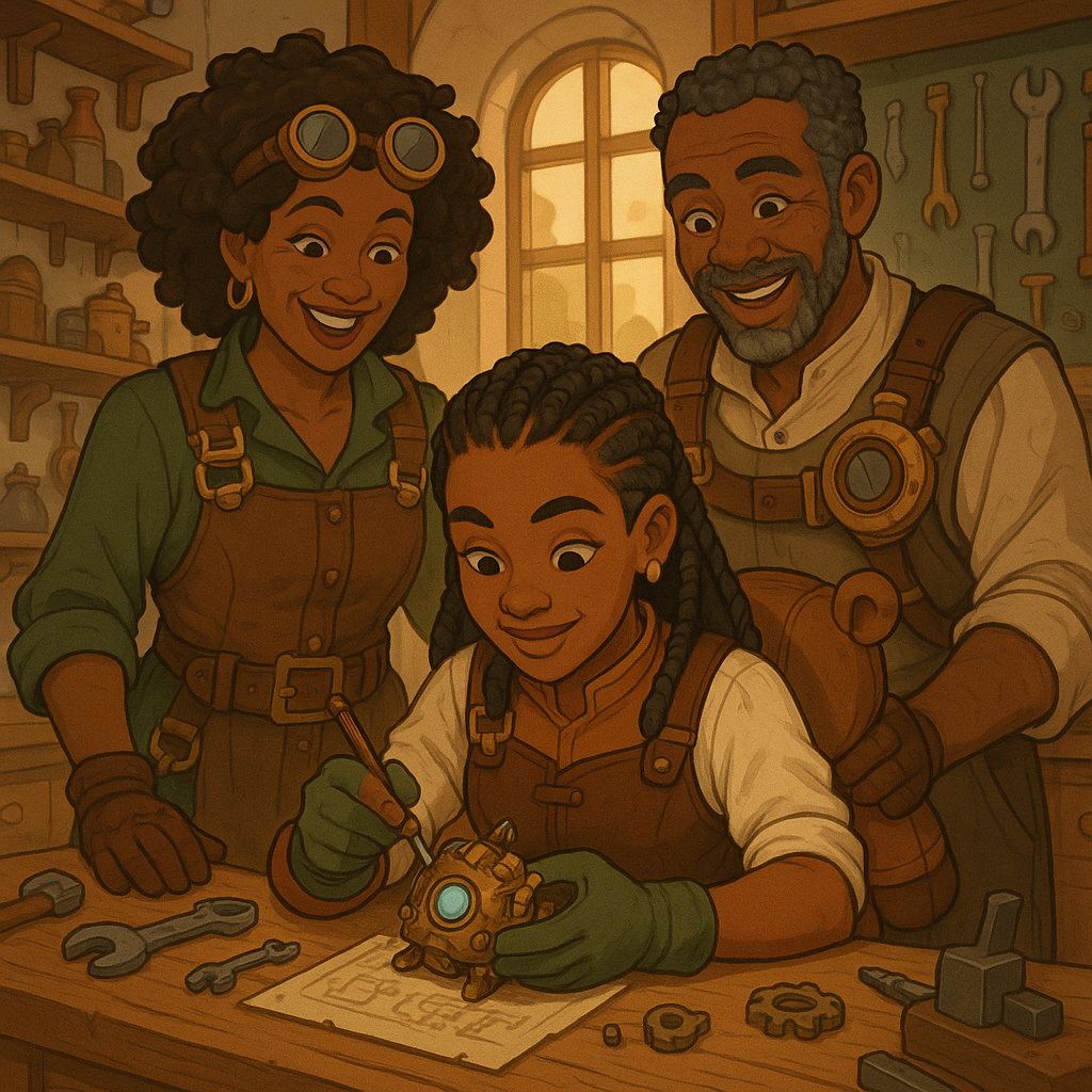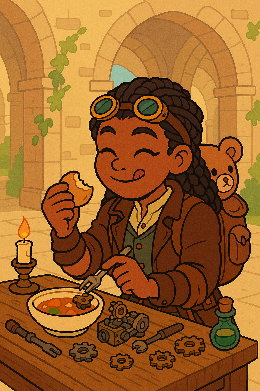 Physiciains and mages alike worked to fix tinks heart, but none were ever sucessful. By the age of 4 tinks brilliance with machienery and magic was evident, building fuctional albeit cruid constructs, feather fall devices, and mage hand projectors to help her sneak extra cookies using parts her parents let her play with in their workshops.