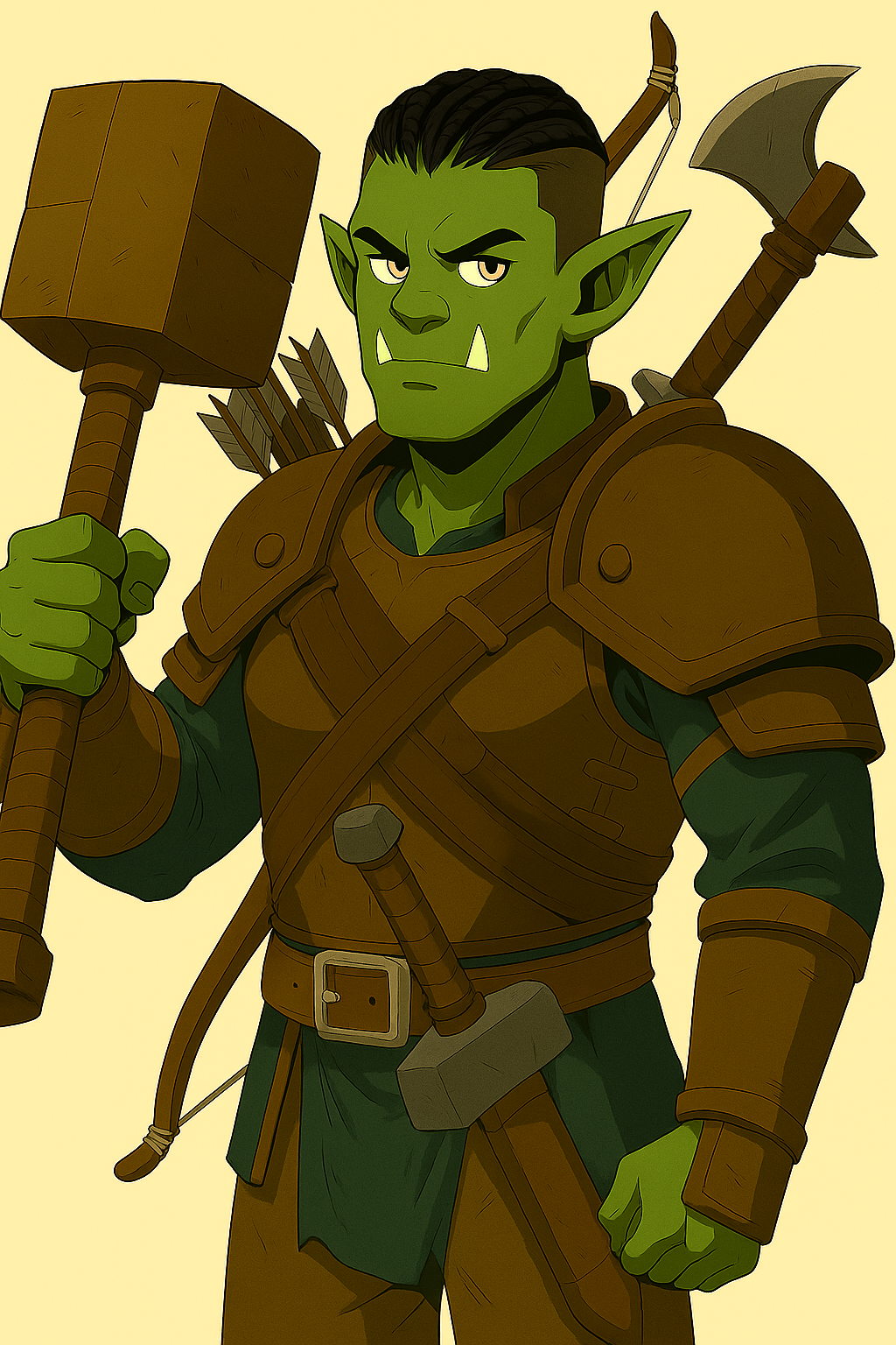Like many Children of the Orrukai, Papyrus grew up surrounded by a mosaic of ancestries—orcish hunters, human-foundlings, tabaxi wanderers, elven rangers, and more. The tribe’s diversity meant he was never singled out for his origins. What mattered was his discipline, his spirit, and his willingness to learn the ways of the Hunt.