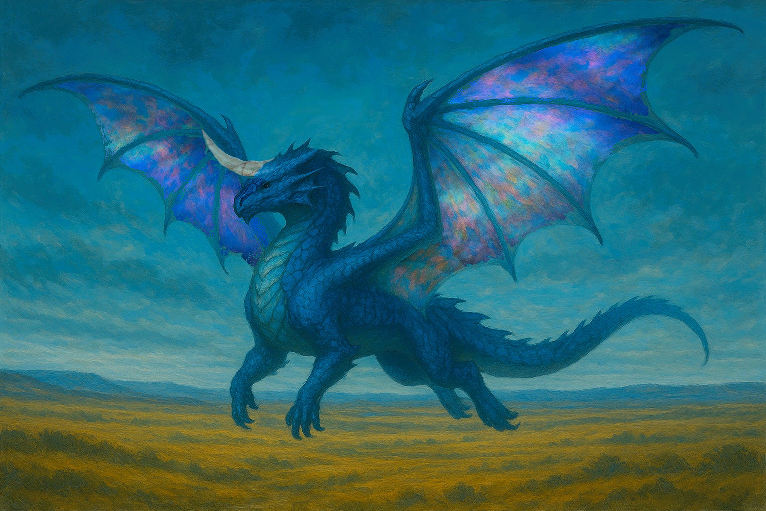 The Blue Dragoness of The Rgai bestows the God King of the Yokun Empire with the Queen's Prism, Alph. It is then placed atop the imperial palace of Sharakzizir, blessing the city for posterity.