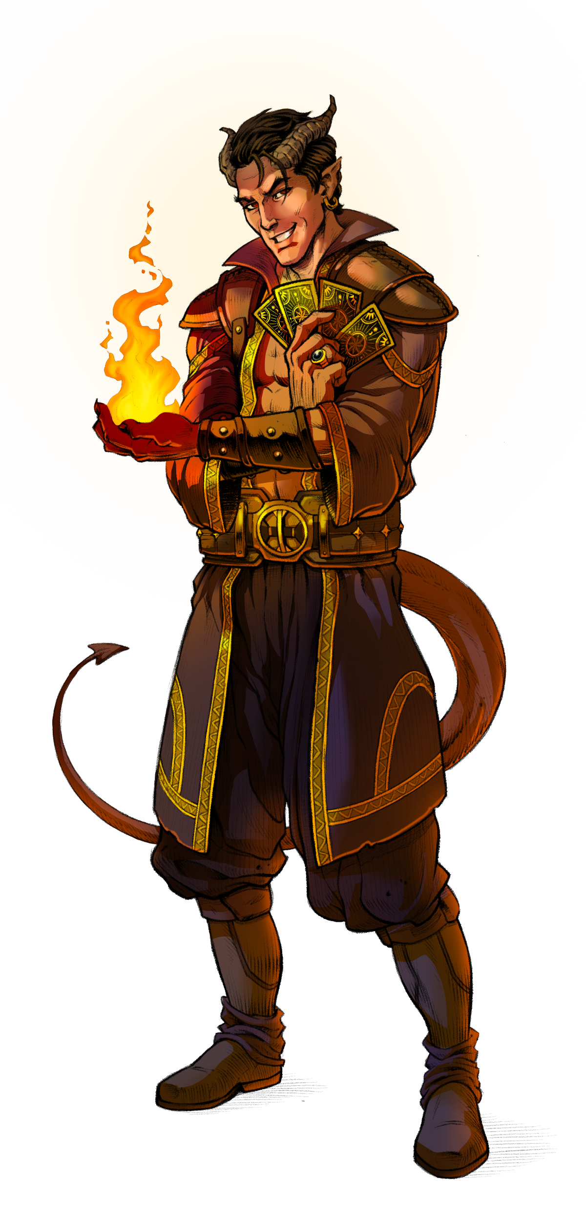 Underneath the performance, however, lies someone tangled in a web of consequences. Chimera is a warlock bound to a fiend named Kolgoth, a pact made long ago that still casts a long shadow. Though he speaks of it rarely, the weight of that contract is clear—and so is his desire to break free, even if he can never voice it aloud. After all, Kolgoth is always listening.