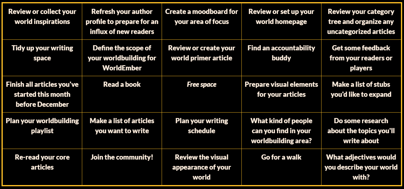 This year is also different because we have a bingo instead of a list of tasks to fulfill this time...