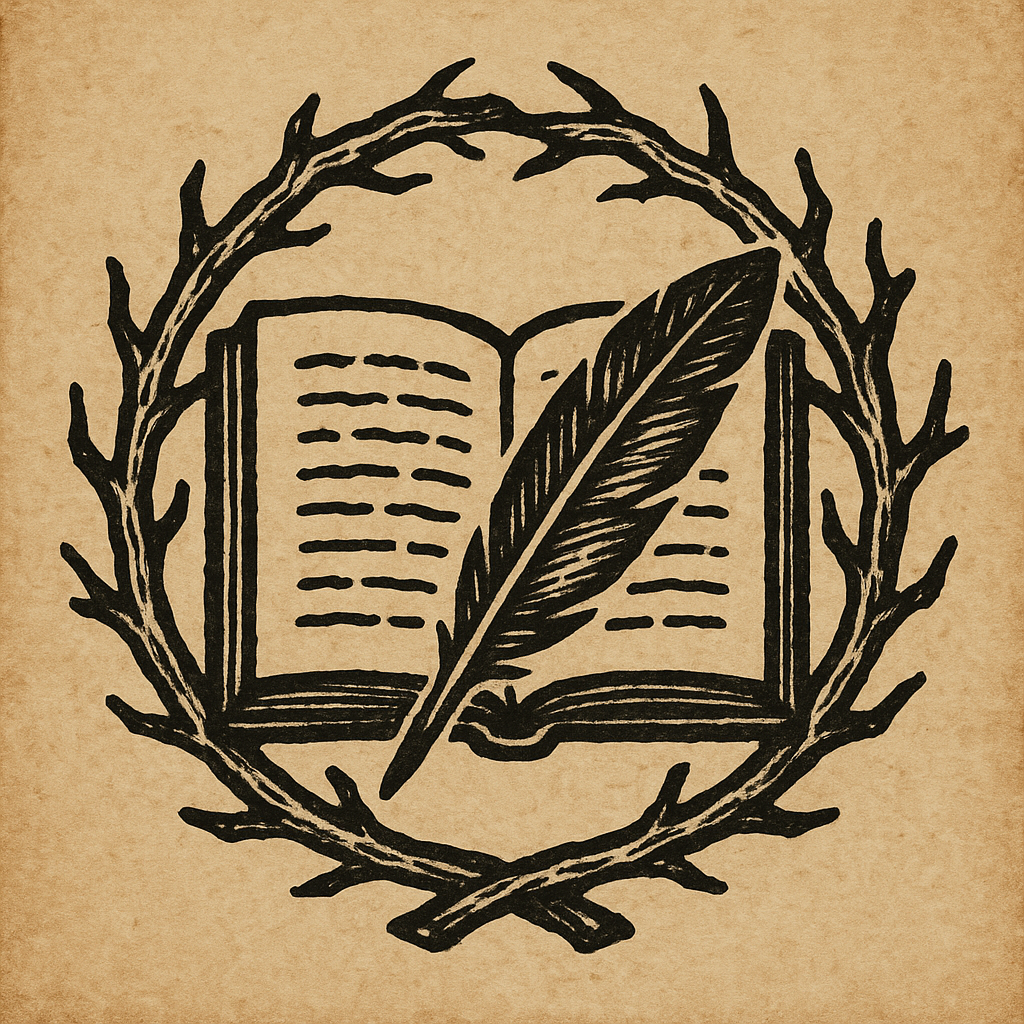 The sigil of the guild centers around a book and a quill, showing dedication both to the Kurothic Carvings and the written word. The twigs that surround it represent the gnarled twigs of Hoo.Motto