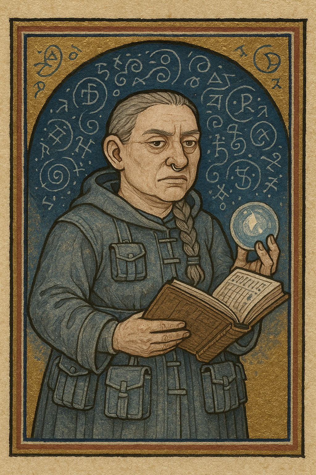 Even within a guild of clerics, Ko Leff is known for taking extensive notes. They have a somewhat manic energy and are in charge of the guilds' research team.
