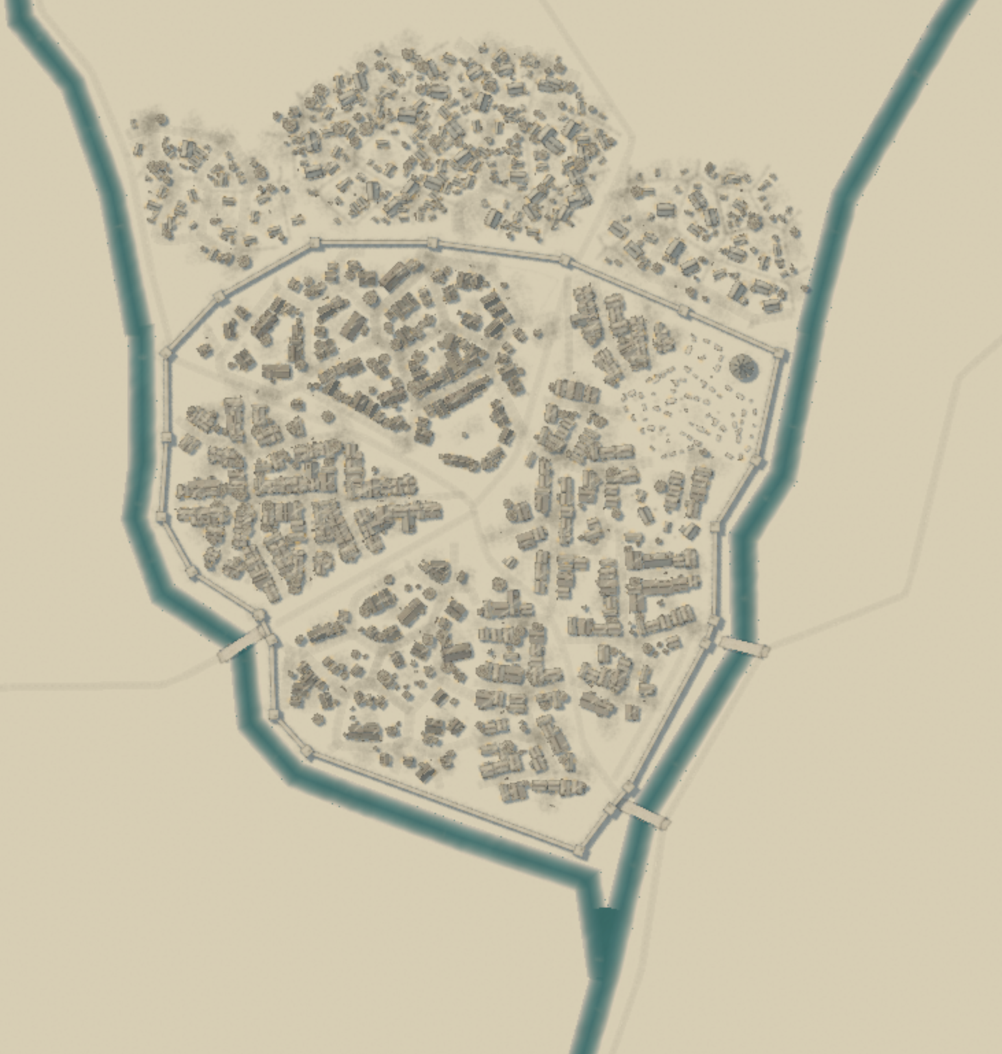 | Gnarled Yard | Cheap, mainly residential | Communal washing houses, The Crook (tavern), The Mended Kettle (repairs) |