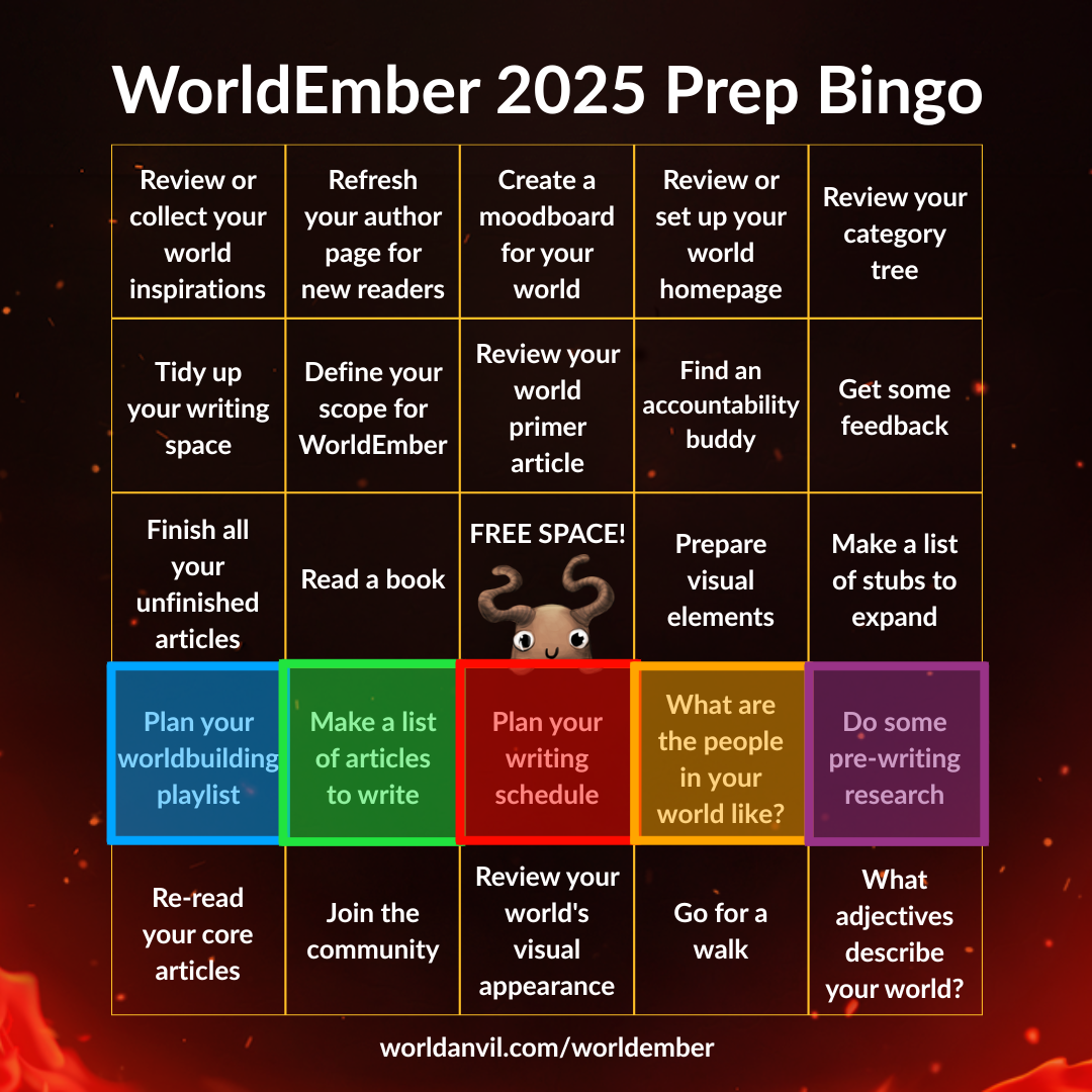 I will not lie - I picked this row entirely because I had already done one of the boxes and didn't want to do the column ^v^Worldbuilding Playlist