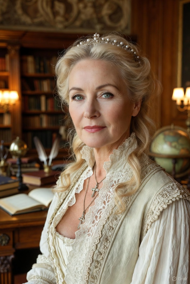 Sasha is always impeccably dressed, as befits her station. She always wears a ring of protection.