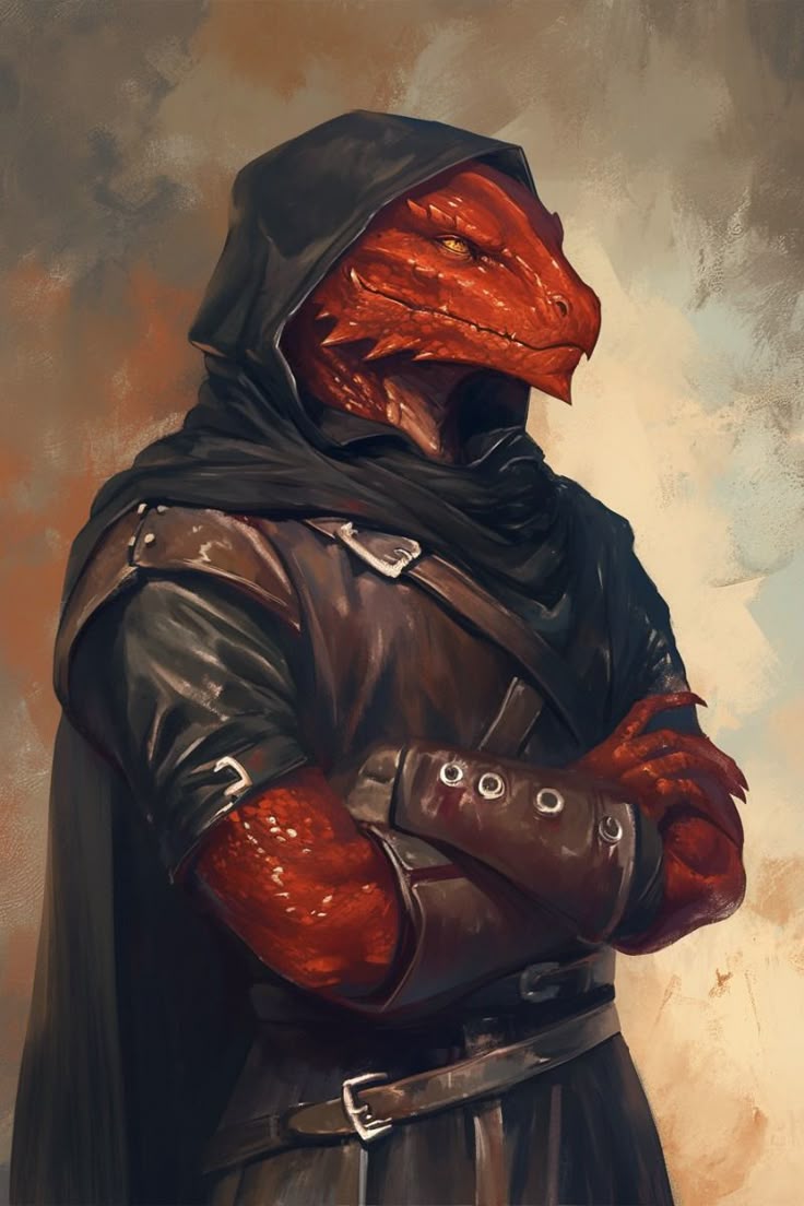 Standing a little shorter than most adult dragonborn, Simon still carries himself with surprising confidence, his stance radiating both defiance and wary mistrust. The faint scuffs and wear on his armor suggest he’s already lived a rough life, one that’s forced him to grow sharper than most his age.