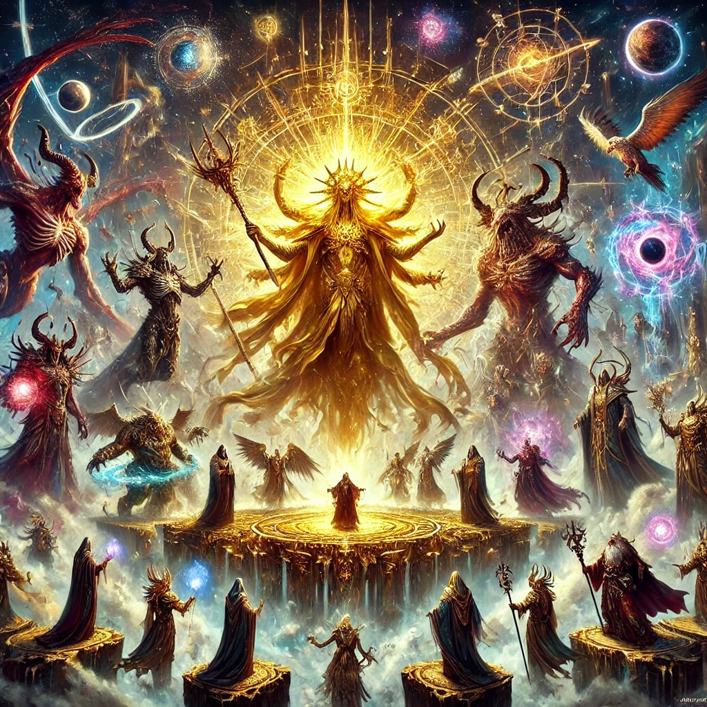 - Description: The Golden Being is the supreme creator of Tyranor, embodying unity, divine knowledge, and the perfection of cosmic order. Though silent and distant, his influence is felt across the world as a guiding force of stability, progress, and ultimate enlightenment.