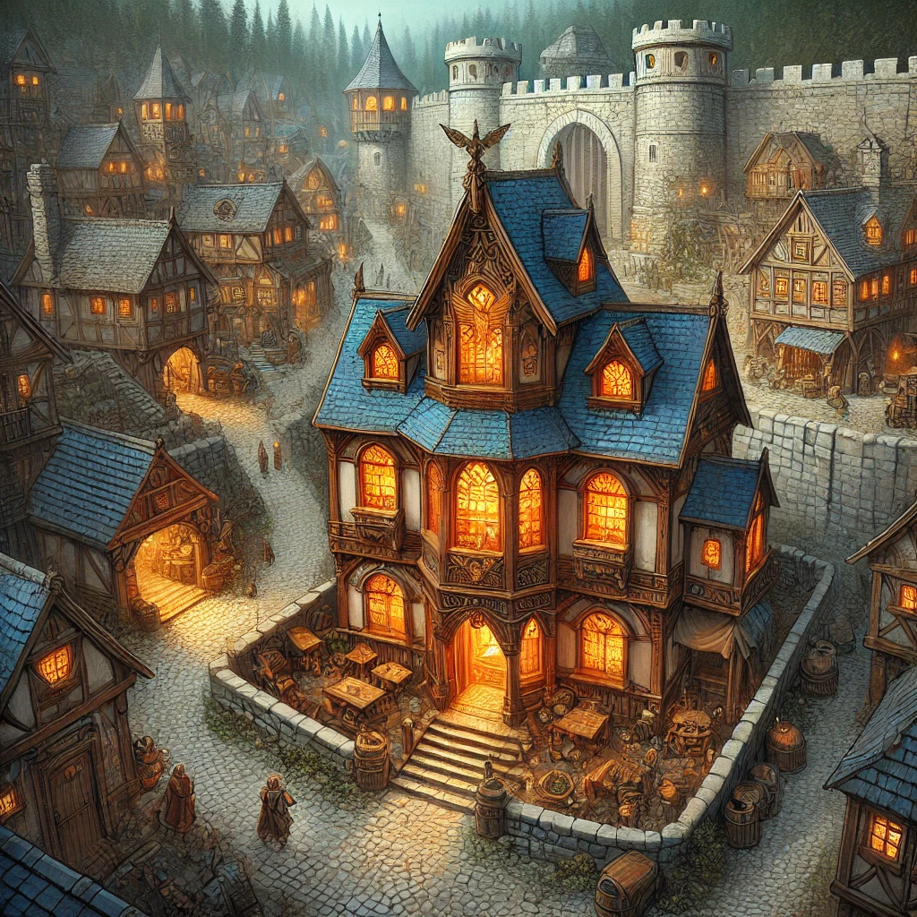 Despite its warm and inviting atmosphere, whispers of the inn’s connection to the forest’s mysteries lend an air of intrigue and caution to the establishment. Adventurers, loggers, and traders frequent the Angel’s Wing, drawn by its reputation for hearty meals, strong drinks, and tales shared by its eclectic patrons.