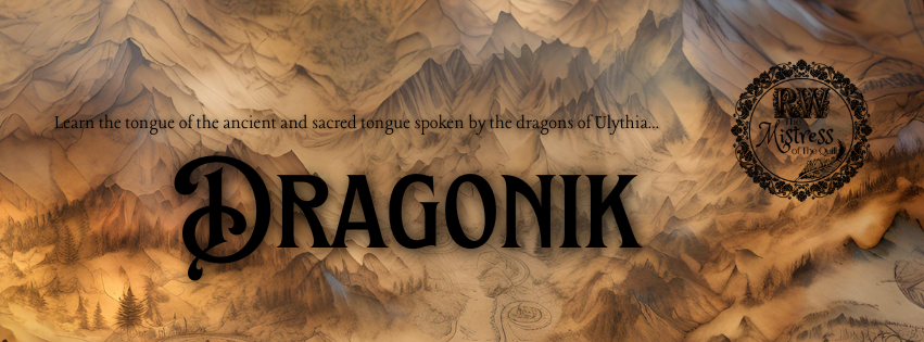 Dragonik (DRAH-goh-nik) is the ancient and sacred language of the dragons, a tongue of elemental resonance, often resonating in deep, thunderous tones or ethereal whispers. It is not merely spoken — it is willed into existence. Words are formed through primordial intent and vocalized with exact resonance to manifest power. Written in fire, it forms angular, sigil-like glyphs, often scorched or etched into stone, bone, or air itself.Phonology