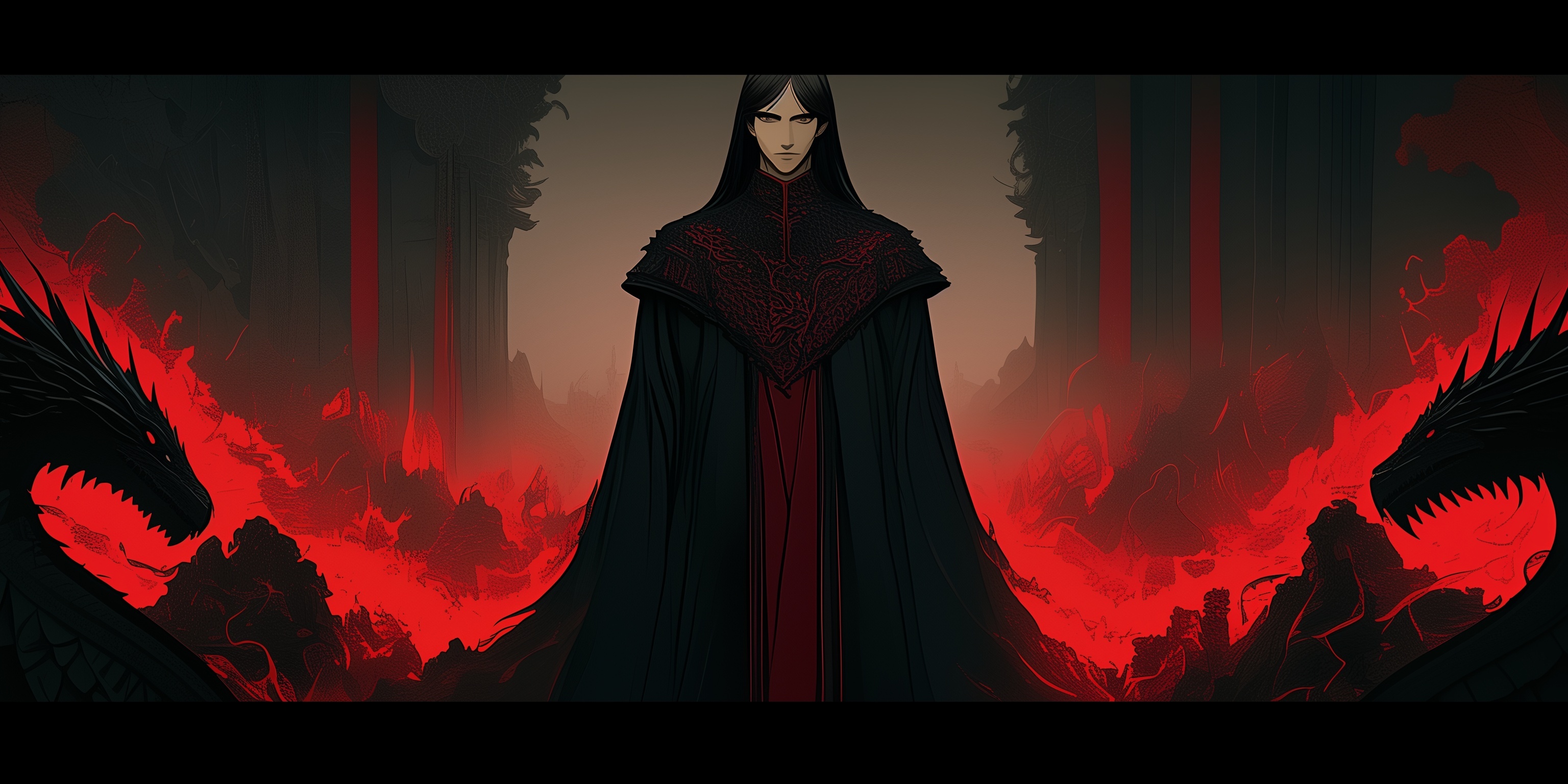 His clothing follows the same philosophy. Tunics, cloaks, and layers in the scarlet, black, and silver of House Seinrill are tailored with deliberate restraint. Embroidery and detail are present but never indulgent, serving only to signal his station. There are no jewels, no enchantments on display, no unnecessary show. Each line is measured, each layer intentional, creating an image of elegance without excess.
