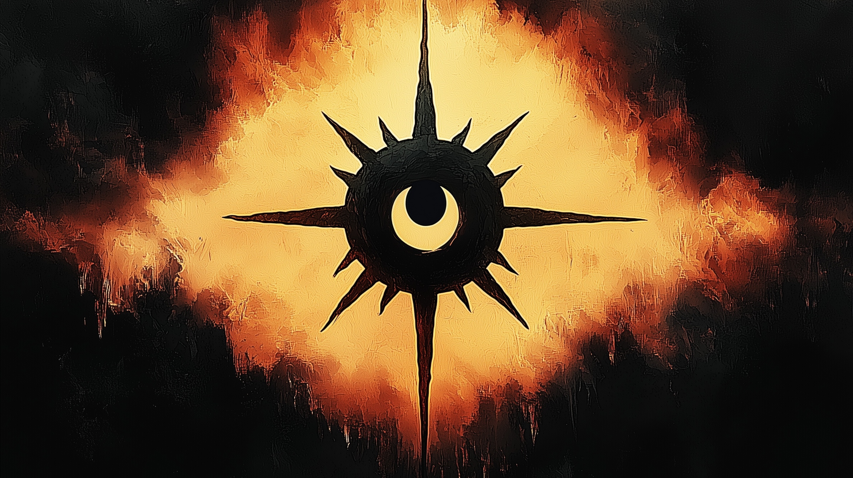 Beneath the phoenix lies a darker heraldry, that of the Black Sun. Known only to his most trusted agents, this sun in total eclipse represents the truth of his rule. The phoenix offers grace. The Black Sun tells the honest story, that peace is bought in blood, that stability is enforced in shadow, and that every golden age rests on sacrifice. It is not revered. It is feared.