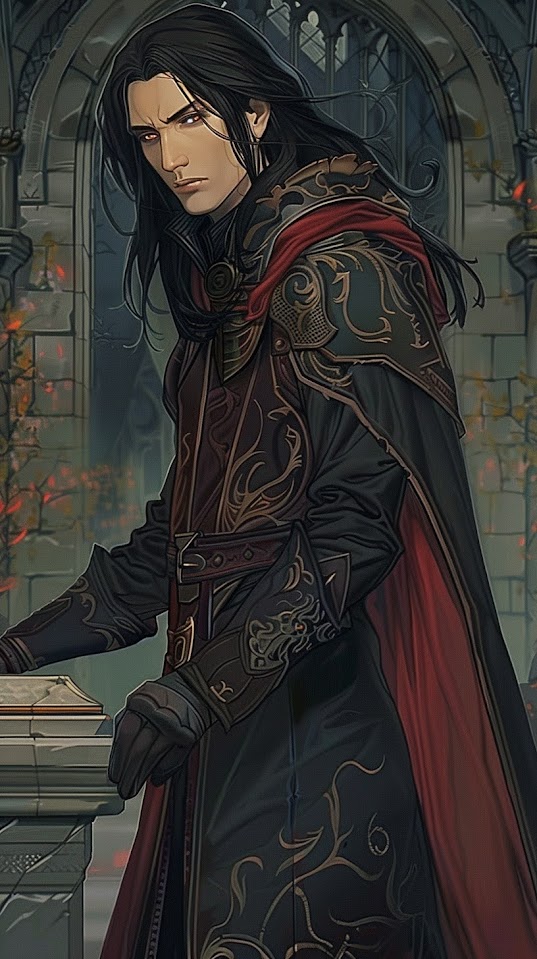 Anson’s face carries the unmistakable shape of his bloodline. The structure of his jaw. The quiet tension around his eyes. The steady, unreadable composure that seems carved rather than grown. All of it echoes Corvyn in his youth so strongly that those who knew the older man often fall silent when they first see Anson. There is no softness in the resemblance. It feels like looking into a memory that never aged. People who catch only a passing glimpse wonder if the stories about the Seinrill legacy are true. They are not, but the resemblance fuels speculation wherever he walks. His features rest naturally in a calm, controlled expression. Even when relaxed he looks like someone who is studying the world rather than occupying it. The stillness is inherited. Corvyn wore it long before Anson did. Yet on Anson it feels sharper, as if tempered by the years he spent reading danger in every angle of a room. When he raises a brow or shifts his gaze even slightly the entire atmosphere changes. His face communicates more through restraint than expression, and that alone can unsettle people who do not know him. Up close the similarities to Corvyn run deeper. The shape of his mouth. The line of his cheekbones. The slight downturn of his brows when he concentrates. Strangers often mistake him for a portrait of Corvyn come to life which frustrates him more than he lets on. He does not resent his father’s face on him, but he carries a complicated relationship with the man who shaped his life. Seeing that reflection in mirrors and windows reminds him of a story he no longer wishes to repeat. The one feature that breaks the resemblance completely is his eyes. They were once the same deep green their mother carried. The Garsenda ritual changed them forever. His irises turned gold, not bright like flame but muted like old metal warmed by candlelight. The color catches light strangely and shifts when he focuses, as if a second perception rests behind the first. This is the mark of his altered sight, the fractional glimpse of the next moment that bends his awareness into something more than human reflex. Anson has never fully accepted his golden eyes. To him they feel unnatural and unearned. He believes they make him look predatory or eerie. He has heard the way whispers change when someone notices them. He knows the look people get when they are not sure what he is seeing or how far ahead his awareness has reached. He never wanted to inspire fear through appearance. The eyes remind him of a transformation he did not choose and cannot reverse. Despite his discomfort, those eyes serve as the quiet symbol of the man he has become. They are a visible reminder of his discipline, his training and the burdens he carries. They set him apart from Corvyn in a way he secretly finds necessary. They mark the point where his father’s legacy ends and his own begins. Anyone who looks into them long enough understands that beneath the gold lies a depth shaped by sorrow, insight and the relentless work of forging himself into something better than the life he inherited.