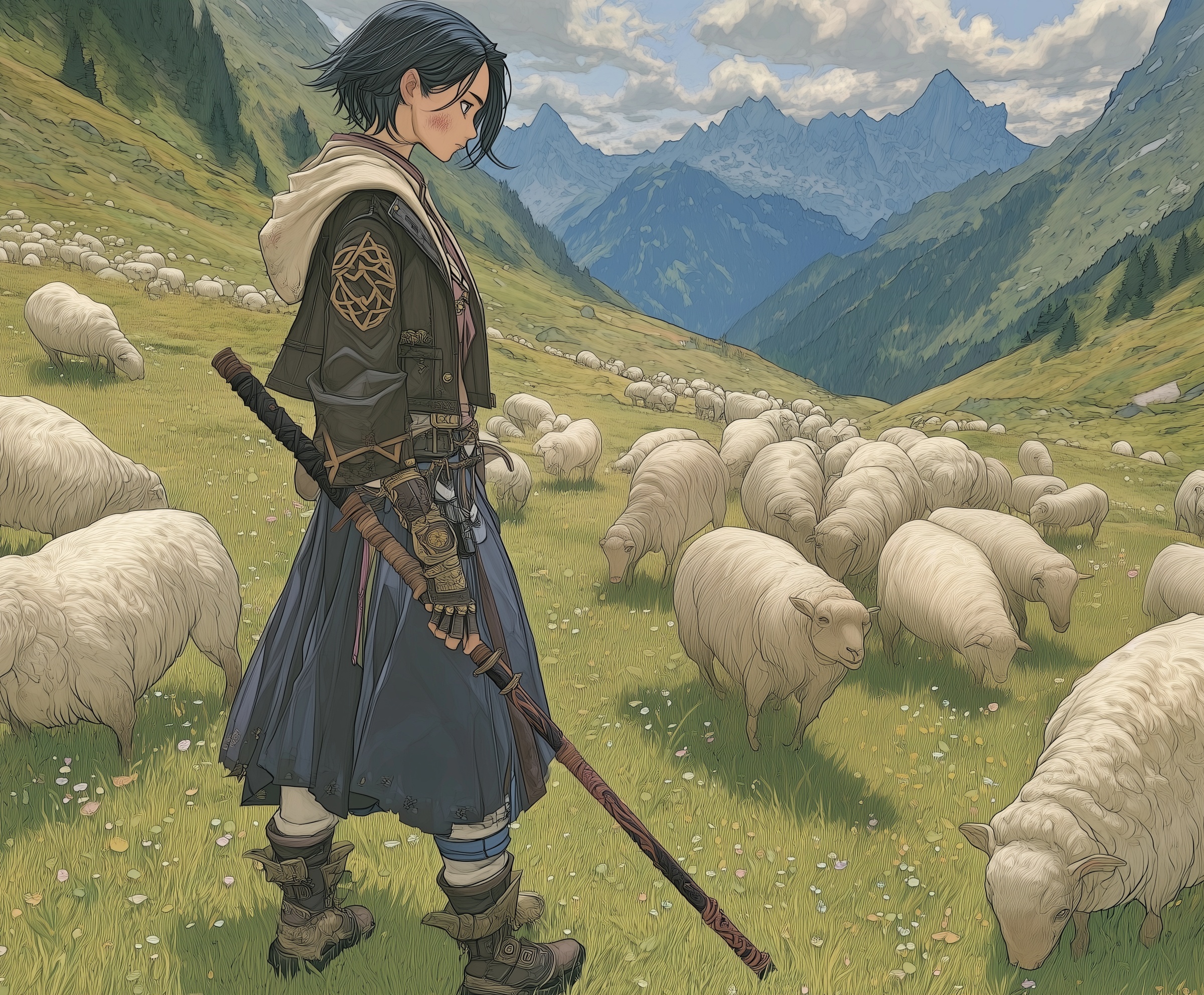 The Arin chokuto embodies a quiet contradiction, a silent whisper of restrained menace hidden in plain sight. It is not a sword born for ceremony nor a blade meant to proclaim martial prowess. No glittering gems adorn its surface, nor intricate filigrees to catch the wandering eye. Its story is etched instead in wood polished by countless patient hands, steel honed in solitary silence, and a design whose austerity mirrors the lives of the people who wield it. To the casual observer, the chokuto is easily overlooked, deliberately unremarkable. At a glance, it is little more than a well worn shepherd’s staff, indistinguishable from countless others carried daily along steep mountain trails winding through the Agriss. It bears the marks of honest use, weathered grips bound in rough cordage, leather strips, scraps of oilcloth, or even simple beads and charms. Each adornment is chosen not merely for decoration, but for utility and quiet personal sentiment. A strip of oilcloth might become a torch in desperate need, a tightly wound cord could lash a tent in a storm, or secure a blade to fashion an emergency spear. Beneath these practical wrappings, hidden from prying eyes, lies the truth of its lethality, a blade sharp enough to sever life with a whisper. This hidden blade, straight and double edged, stands in stark contrast to the graceful curves and flourishes of foreign swords. Its stark geometry, precise, unforgiving, devoid of decoration, reflects a philosophy of use born from necessity and tested relentlessly against threats emerging from the shadowed mountain paths of the Arin homeland. While other swords might dance and duel, the chokuto simply strikes. Its blade, meticulously forged from cold folded mountain steel, sometimes alloyed discreetly with coveted Arin Silver, is designed for absolute certainty. When it is drawn, the moment has already been decided. There are no feints, no flourishes, only the single swift stroke of a tool wielded by a hand accustomed to hard labor and sudden danger. In Arin hands, the chokuto is an instrument of subtle terror. Its concealment within a walking staff does not merely serve as a simple disguise but reflects a cultural commitment to preparedness without boasting. Arin shepherds, caravan escorts, and mountain wardens, often spending entire summers isolated high among alpine pastures, have elevated this unassuming sword from survival implement to deadly art form. Idle hours spent beneath cloudless skies, watching over grazing livestock in lonely mountain clearings, afforded the time, patience, and solitude necessary to perfect an efficient, ruthless martial discipline. Without grand dojos or revered masters to guide them, the Arin developed an intuitive combat form, waiting, watching, understanding the subtle language of motion and threat. Every movement refined through repetition and contemplation, each action polished to lethal perfection. In time, these skills wove themselves deeply into Arin Culture, passing quietly between generations not as formal lessons but as shared experience and whispered guidance. Even today, young Arin learn to wield the chokuto not through rote drills or elaborate sequences, but by understanding the world around them, by listening, observing, and acting only when the moment demands. The blade’s draw, strike, and return become a single, seamless breath, faster than thought, quieter than the rustle of wind through mountain grass. To witness the chokuto drawn openly is rare, and to survive its reveal rarer still.