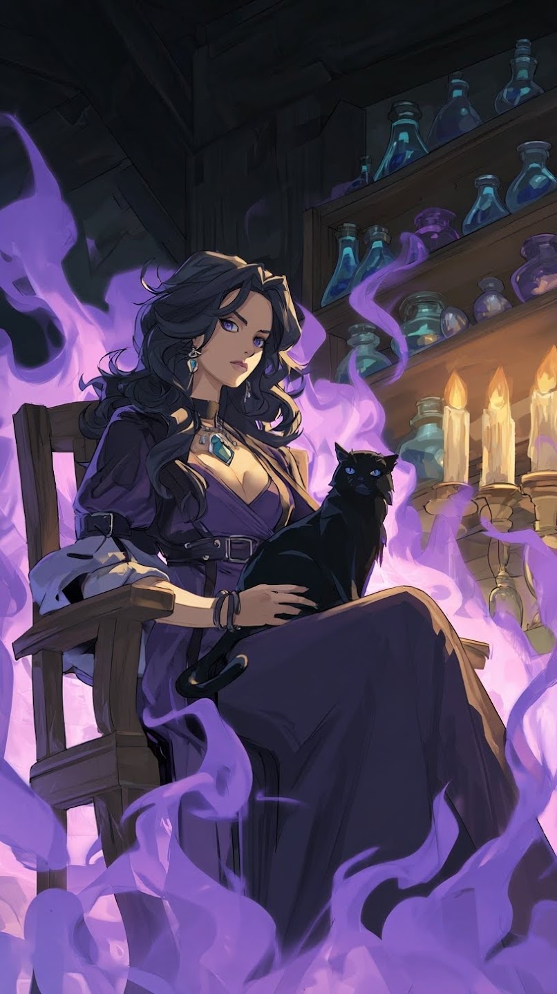 Cassandra Silvernight moves through the world the way a whispered secret moves through a crowded room. You notice her, then doubt you did. You feel her pass before you ever see her face. Those who try to follow her trail rarely find more than the echo of perfume or the faintest shift of shadow where a woman had been standing moments before. In Areeott, there are rumors of a woman with blue orchid eyes who steps through locked doors and never leaves footprints. Most who repeat these stories assume she is a myth told by frightened nobles. Most are wrong. For centuries Cassandra served a king the world never sees. She was the smile at the banquet table, the shadow behind the curtain, the presence in a dark corridor that made liars confess before she ever spoke. She learned to slip into courts, guild halls, catacombs, and the undercity with equal ease, wearing her beauty like a tool and her shyness like armor. Those who glimpsed her at work described a woman who could unravel a conspiracy with the same grace she used to pour a cup of tea. She carried her father’s authority and her mother’s ghost in every breath, wielding both with precision even as doubt rotted quietly behind her ribs. Her brother left. Her faith cracked. The story she had been living fell apart beneath her hands. And when the moment finally came, she stepped out of Corvyn’s shadow not with a scream but with a quiet, devastating no. It was the only word he could not command. It was the one that cost her everything she had been trained to be. Yet it opened the only life she had ever wanted. A life with warmth. A life with laughter. A life with a man who taught her that the past is not a place to live. For all her mastery of illusion, this was the first truth she ever allowed herself to believe. Now the world sees her differently. Not as a blade hidden in the House Guard. Not as the daughter of a legend or a curse. She walks through markets with children at her side and a thief at her shoulder, humming little songs so softly she never notices she is doing it. She still carries her trinkets, her spells, her wicked smile, and the precision of a woman who once walked through the darkest corners of the kingdom. But she no longer belongs to the shadow she was born into. She chooses her steps now. And anyone who mistakes her gentleness for weakness learns quickly why even the bravest men in Areeott do not look too long into eyes the color of winter orchids.
