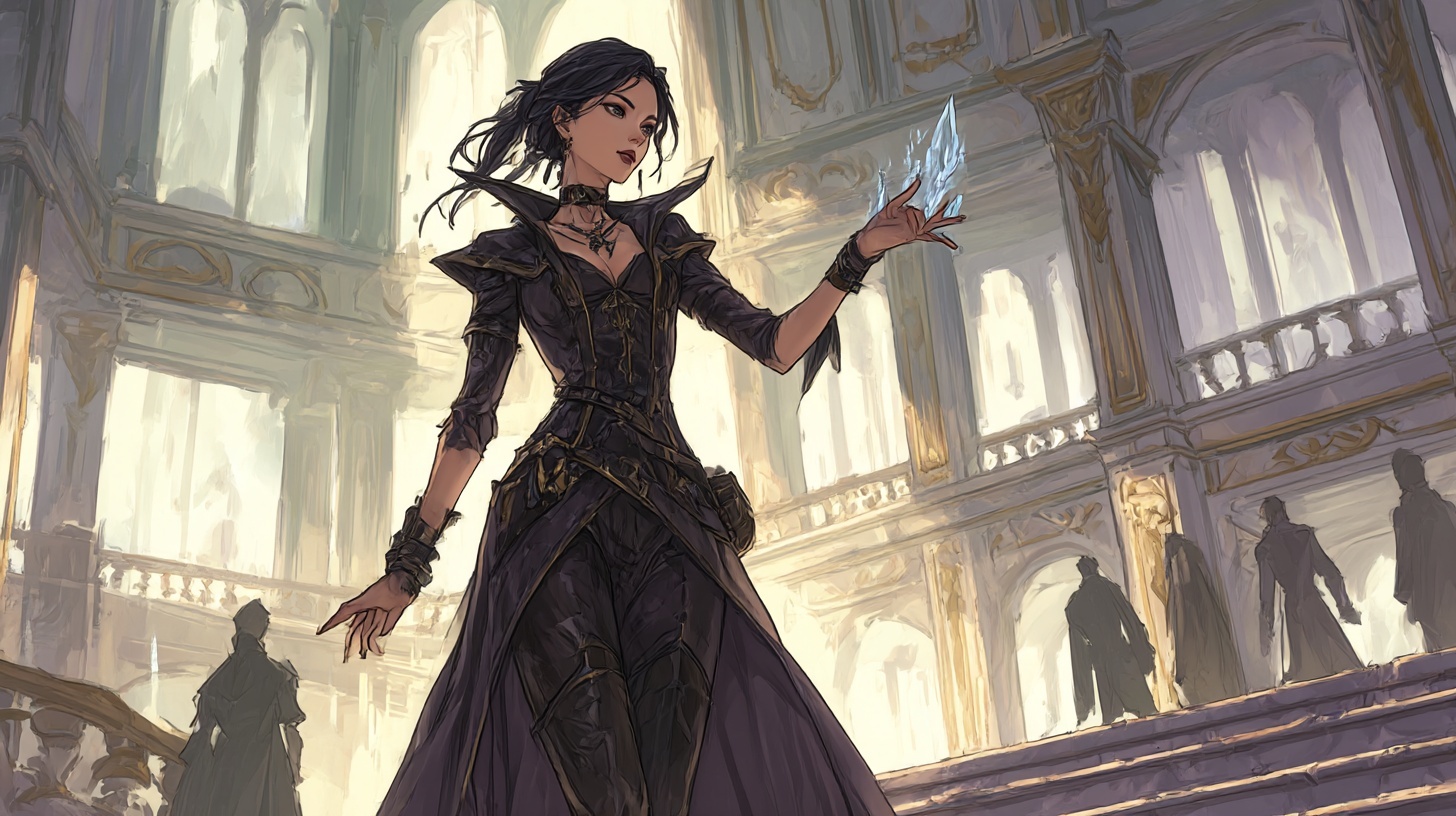 Cassandra Silvernight’s abilities are a rare blend of innate sorcery and disciplined arcane study. Most mages lean toward one path or the other. Cassandra walks both with equal precision. Her natural magic manifests through emotion and instinct, particularly in the realms of shadow, illusion, and charm. These instincts give her an intuitive grasp of subtle spellwork, allowing her to react faster than most trained casters. Where another wizard might need to shape a full incantation, Cassandra can twist a shadow or bend a reflection with nothing more than a thought sharpened by experience. Her formal studies refined these instincts into formidable technique. Cassandra spent decades absorbing arcane theory, practicing spell geometry, and mastering the structure behind illusions that deceive not only the eye but the mind interpreting it. She excels at spells designed to misdirect, conceal, or manipulate perception. Walls become doorways. Silence becomes cover. A crowd becomes camouflage. Her illusions are precise enough to withstand scrutiny from trained operatives and delicate enough to hold together under the weight of rapid improvisation. Infiltration is an art, and Cassandra’s spellwork performs like brushstrokes rather than blunt tools. Beyond illusion she wields a powerful affinity for shadow magic that ties naturally into her temperament and training. These abilities are not rooted in darkness as malice but in darkness as concealment, protection, and quiet potency. She can slip through dim spaces with unnatural ease, mute her presence, and anchor her spells in places most casters overlook. Even when exposed to bright environments she can create micro shadows as anchors for her abilities, giving her mobility and stealth in scenarios where ordinary concealment fails. Her fear of the dark does not lessen her command over it. If anything, the tension sharpens her magic further. Her talents extend into non magical realms as well. Cassandra possesses a near perfect sense of spatial awareness, balance, and timing, the result of centuries spent navigating unfamiliar terrain both physical and social. She can read a room in seconds, anticipate a guard’s patrol pattern after a single rotation, or dismantle a complex lock with calm, practiced efficiency. Her appraisal skills are legendary among those who know her. She can identify forged documents, counterfeit gems, and misattributed artifacts with unsettling accuracy, a talent shaped by equal parts study, field experience, and sheer perceptiveness. All of these abilities work together to form her greatest strength. Cassandra does not overpower obstacles. She outthinks them. She outmaneuvers them. She sees angles others miss and exploits them with gentle precision. Whether she is dismantling a conspiracy, slipping through a guarded estate, or calming a volatile situation with a single well chosen word, Cassandra’s abilities are defined by focus rather than force. She is not the blade that cleaves through danger. She is the quiet hand that redirects it.
