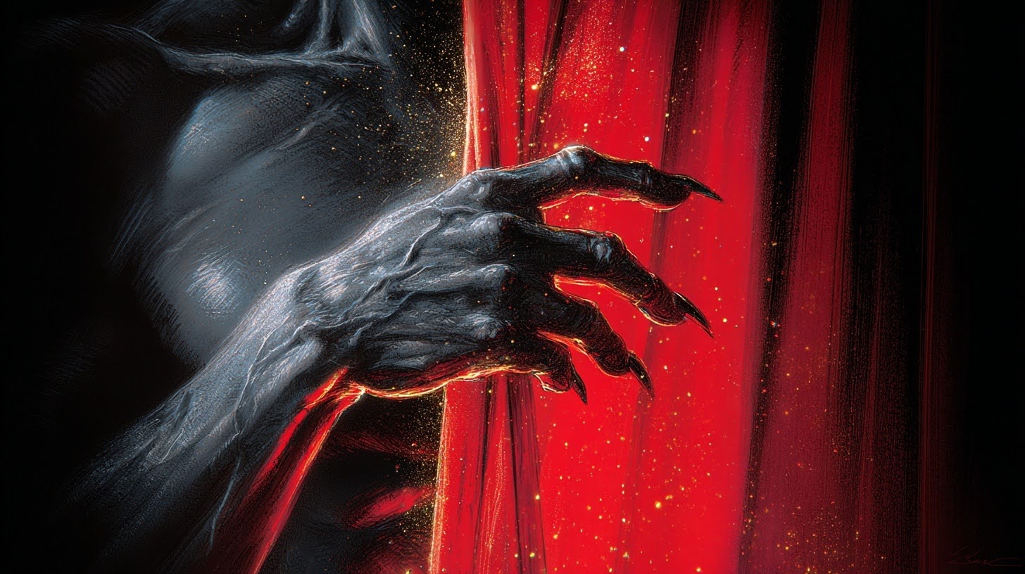 Description: Upon an ebony throne, covered with razor sharp steel spines sits the dark god Deveren. He is adorned in striking, dazzling fineries. His face is hidden behind a porcelain mask depicting a maniacal cackle. A halo of dancing flame hovers above his head. Resting coiled in his hand is a vicious barbed whip. From his back wings of inky black feathers wrap around the dark count.