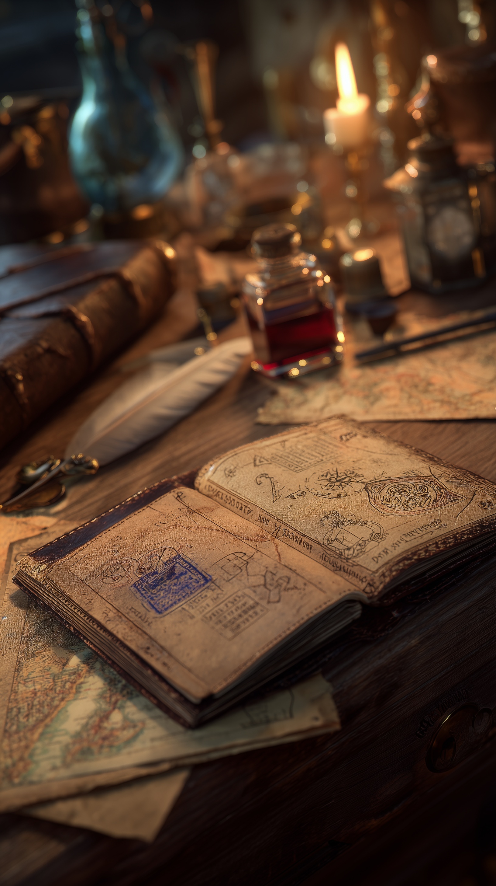 Most passmarks are small, durable folios crafted to survive years of travel. Some are stitched from treated parchment sealed with resin, others are thin plates of etched metal folded into a leather case. Each bears a crest, a registration number, and faint arcane impressions that glow when exposed to verification light. Within are recorded the bearer’s likeness, name, profession, and the endorsements of those who granted or inspected their travel rights. The ink used in official seals is mixed with powdered lodestone so that the document hums faintly when genuine.