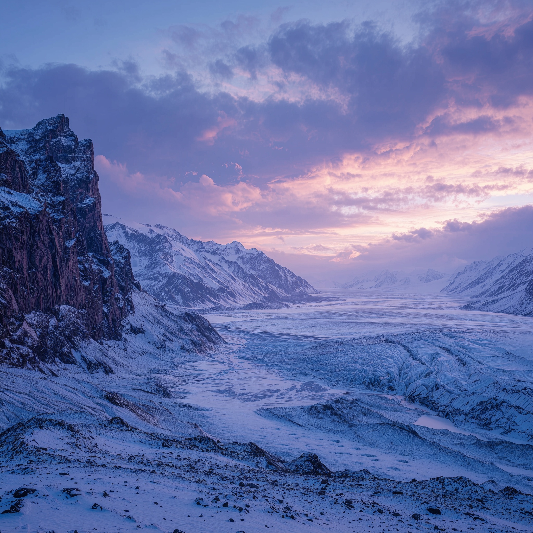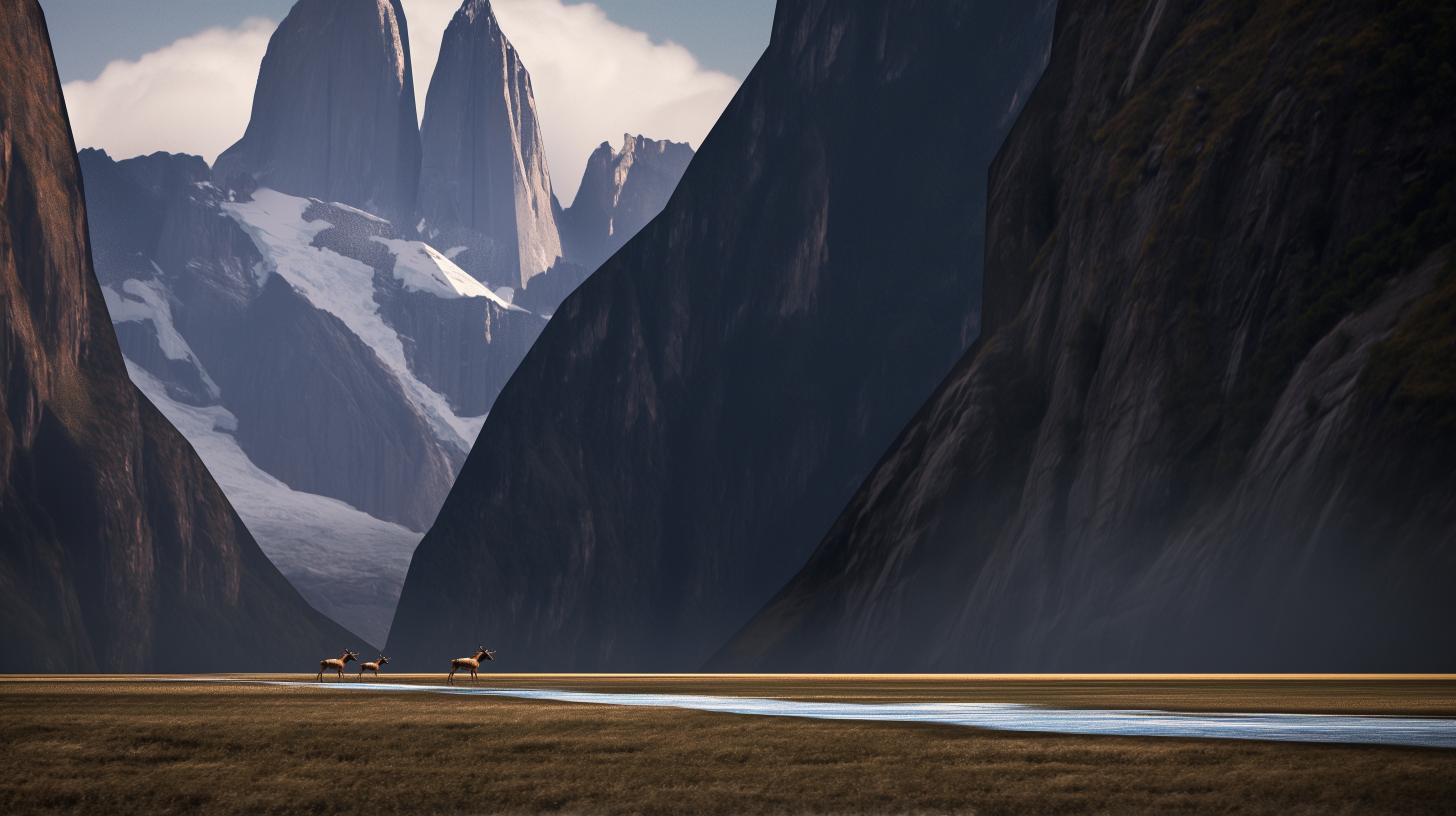 Winter holds longest. The sea lashes the cliffs with constant fury, and the surface of the glacier hardens into ridges that cut like knives. Food grows scarce, and most creatures vanish into shelter. Foxes burrow deep into snow drifts, their bodies curled tight against the endless howl. Birds flee far to the west, chasing open waters, while seals follow the fish that abandon the frozen coast. Only the most patient remain, scratching out what they can from the little that endures. Spring arrives with the first cracks in the ice. Meltwater carves small streams that twist and vanish into hidden depths. These rivulets awaken mosses and lichens along the rocky edges, painting narrow bands of green against the white. Birds return in vast flocks, filling the fjords with sound and motion. Their nests cling to every ledge, and their droppings feed the growth that keeps the cliffs alive for another season. Predators stir with them, lean from hunger but ready to hunt. Summer is the brief season of abundance. The sea warms and teems with life. Fish crowd the currents, drawing seals and whales close to the cliffs. Caribou herds descend from the northern highlands to graze the valleys, trailed by wolves that move with the same surety as the tide. On the glacier surface, meltpools shimmer in the sun, and strange insects hatch in swarms before vanishing as quickly as they appeared. For a few months the land feels alive in every direction. Autumn closes the window again. Storms gather strength, and the first ice returns to seal the streams. Birds take flight in long black ribbons that stretch across the sky. Herds move inland, leaving only tracks that vanish beneath falling snow. Seals slip back into the deeper ocean, and the fjords fall silent save for the wind. By the time the sun lowers for good, the land has emptied. Only the most tenacious linger, waiting for the cycle to begin again. These cycles are fragile, bound to the rhythm of the glacier’s movement. A single massive calving can scatter nests and drown feeding grounds. A season of heavy snow can bury valleys for years. Yet the pattern endures, repeating across centuries. The glacier gives and takes in turn, and the creatures that call it home bend themselves to its will.