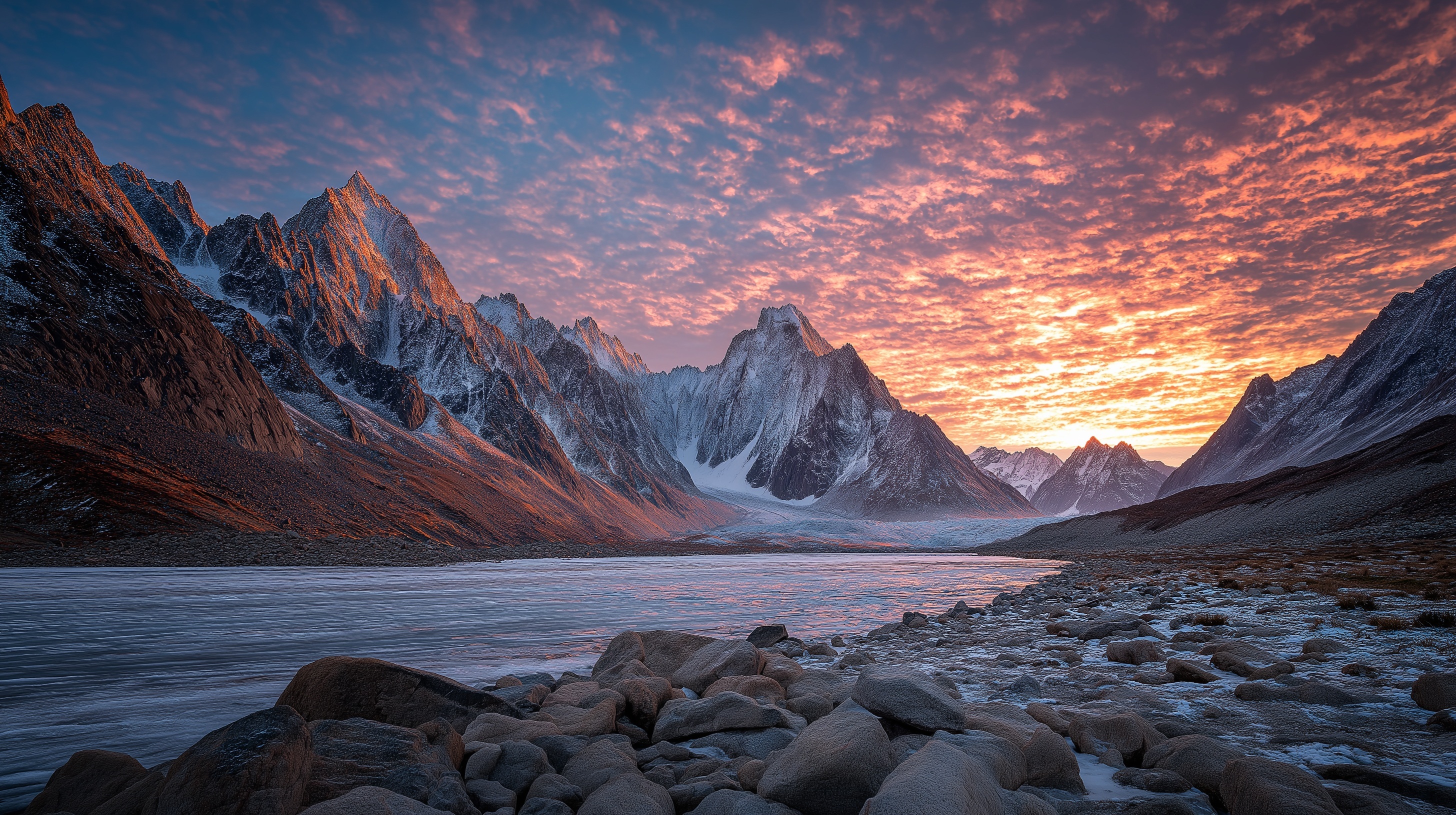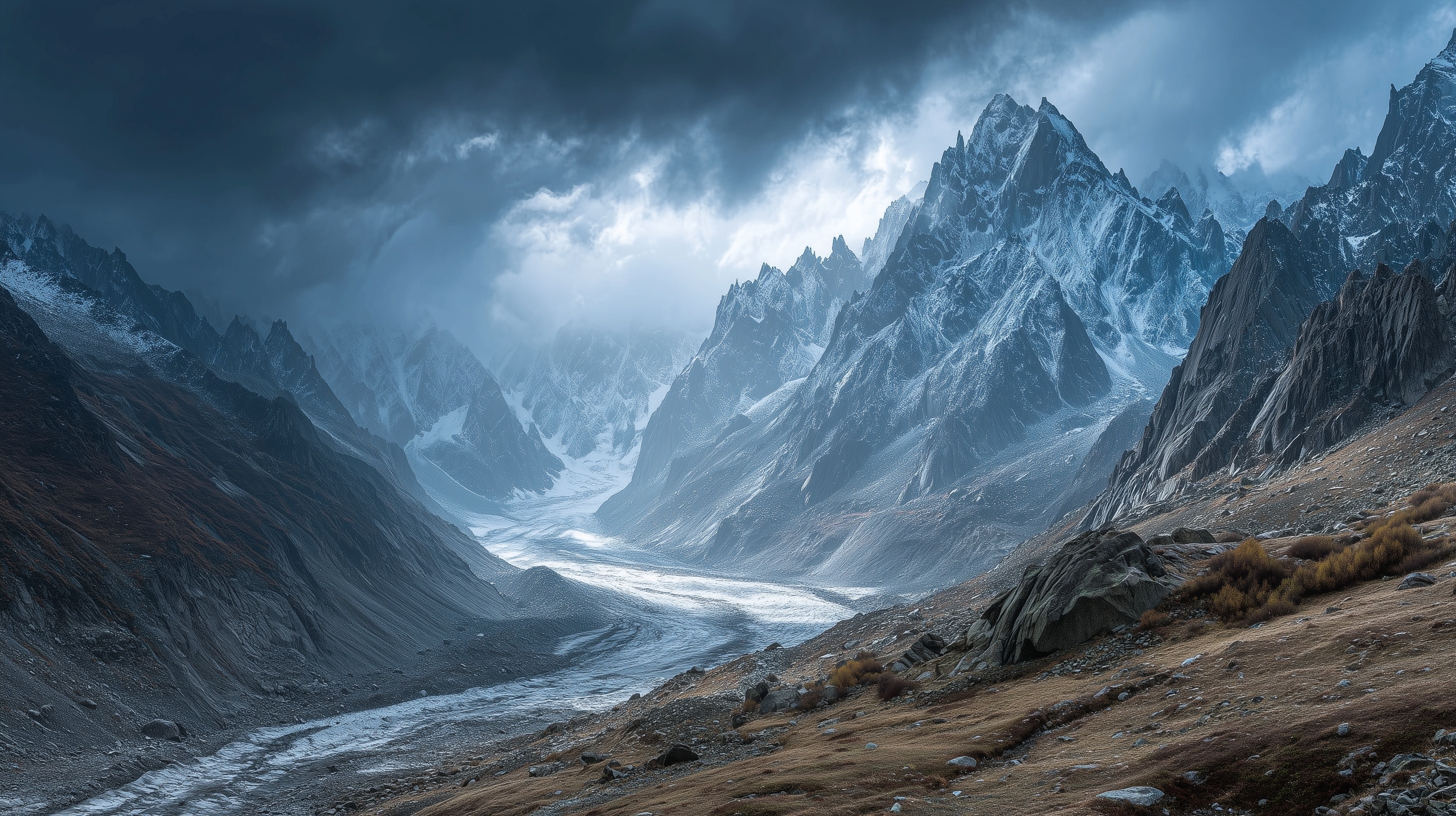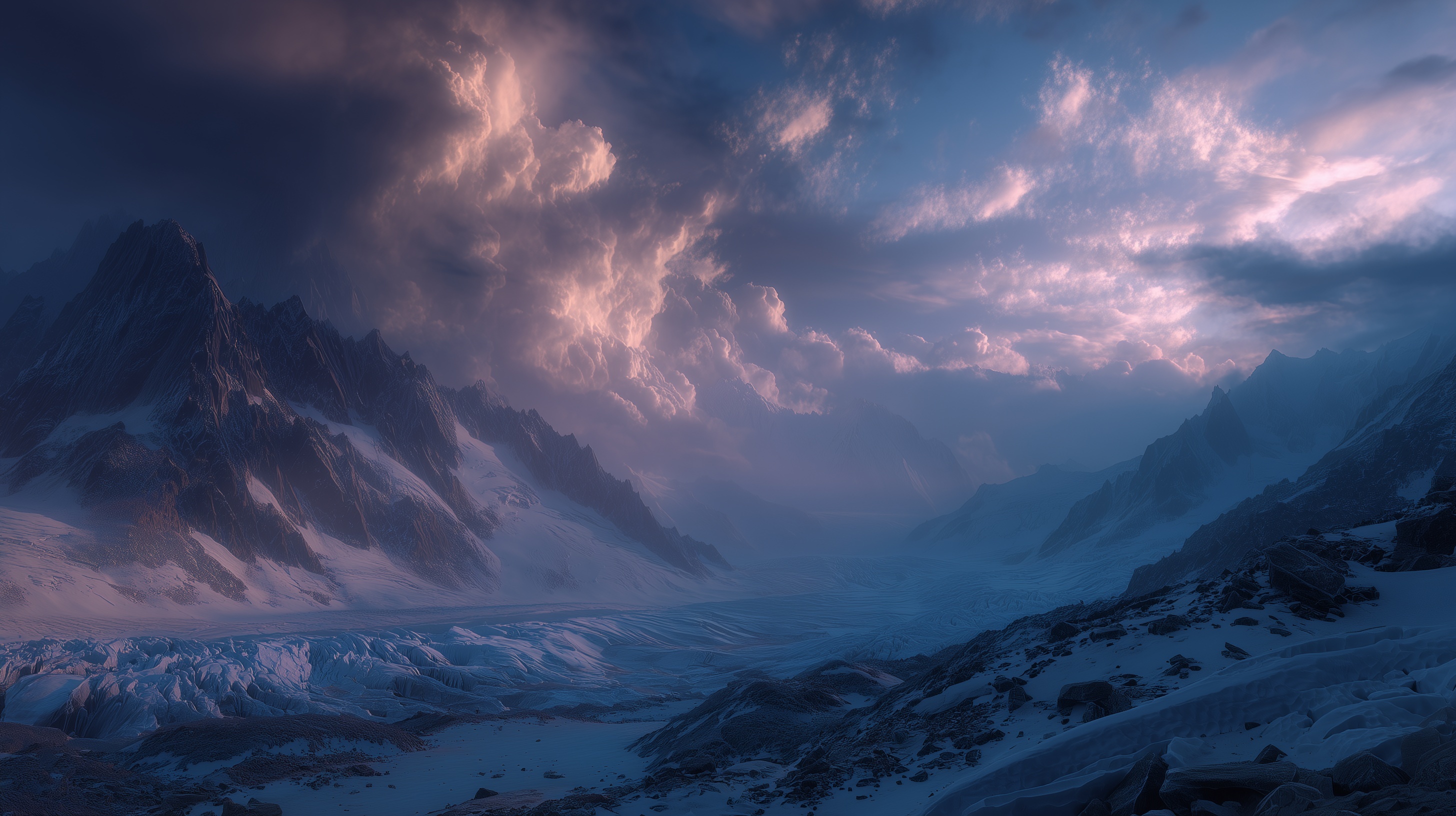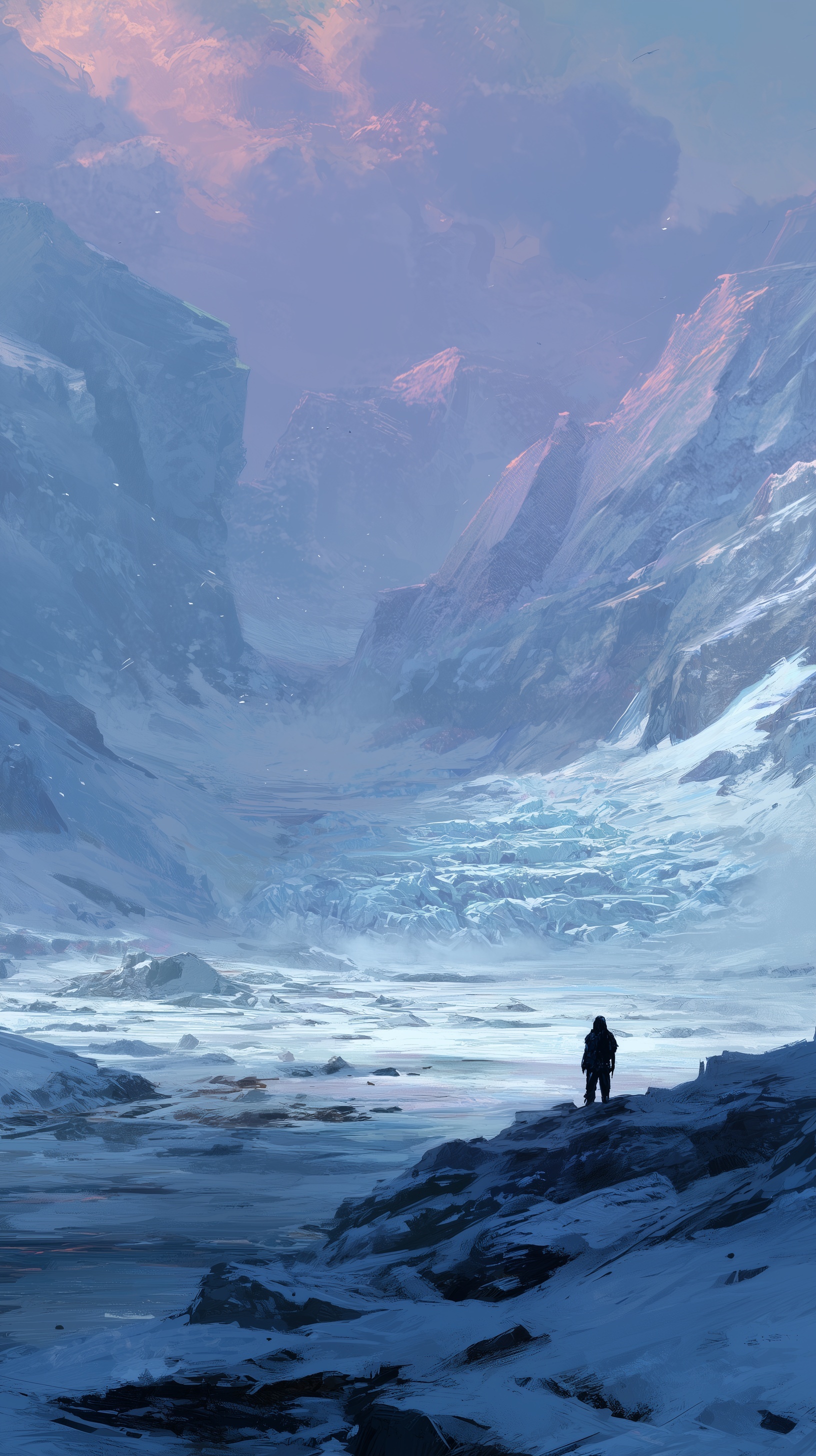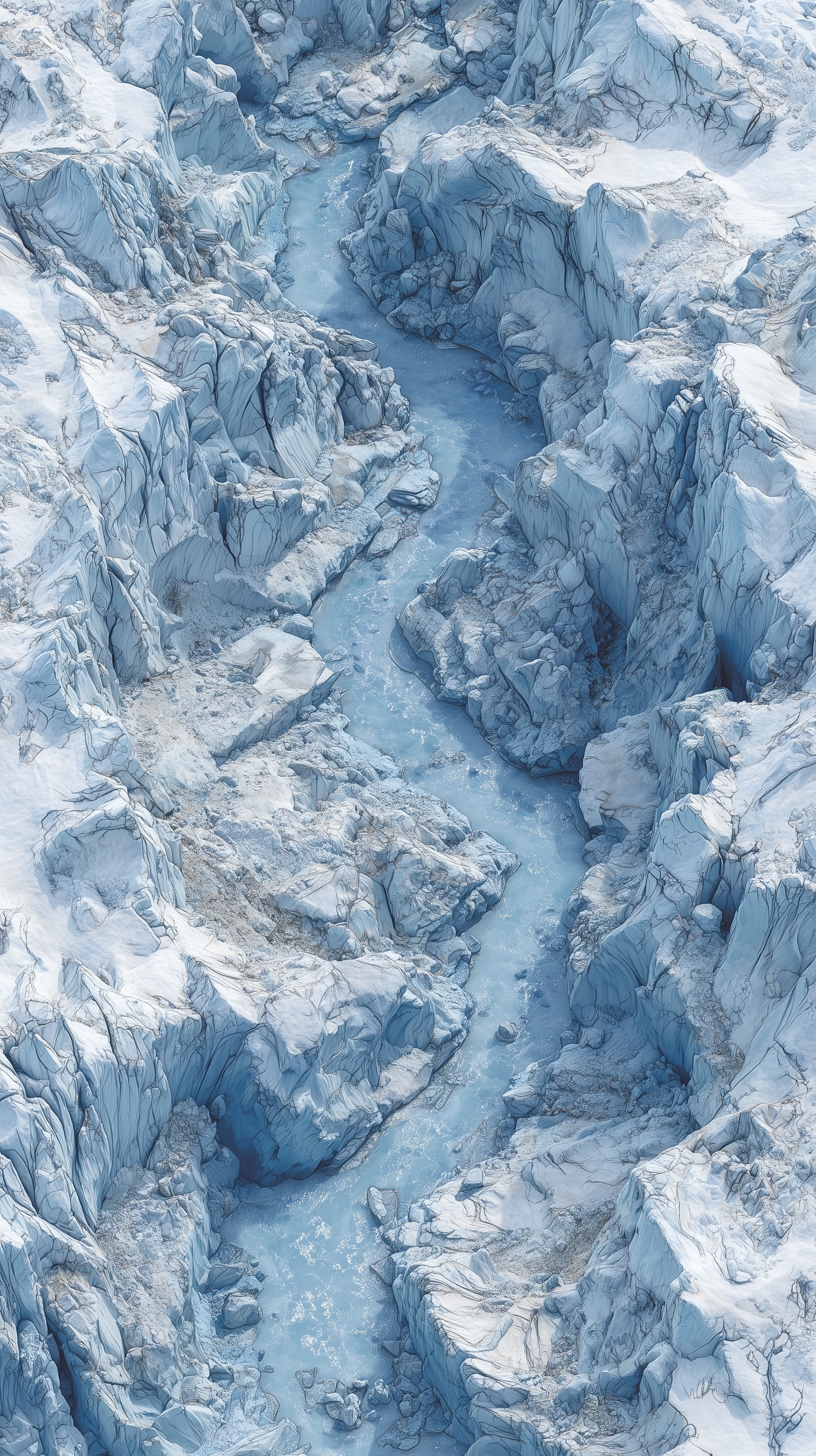 Stone Castle Glacier is a landmass that seems to defy motion yet is never still. It begins high in the southern Agriss Mountains where centuries of snow have pressed into a body of ice that stretches outward for miles. The surface is a jagged wilderness of ridges and crevasses, broken by hidden valleys where avalanches sweep without warning. To cross it is to walk upon a shifting maze that remakes itself with each season. Trails vanish beneath new walls of ice, familiar markers collapse overnight, and the land is never the same twice.
