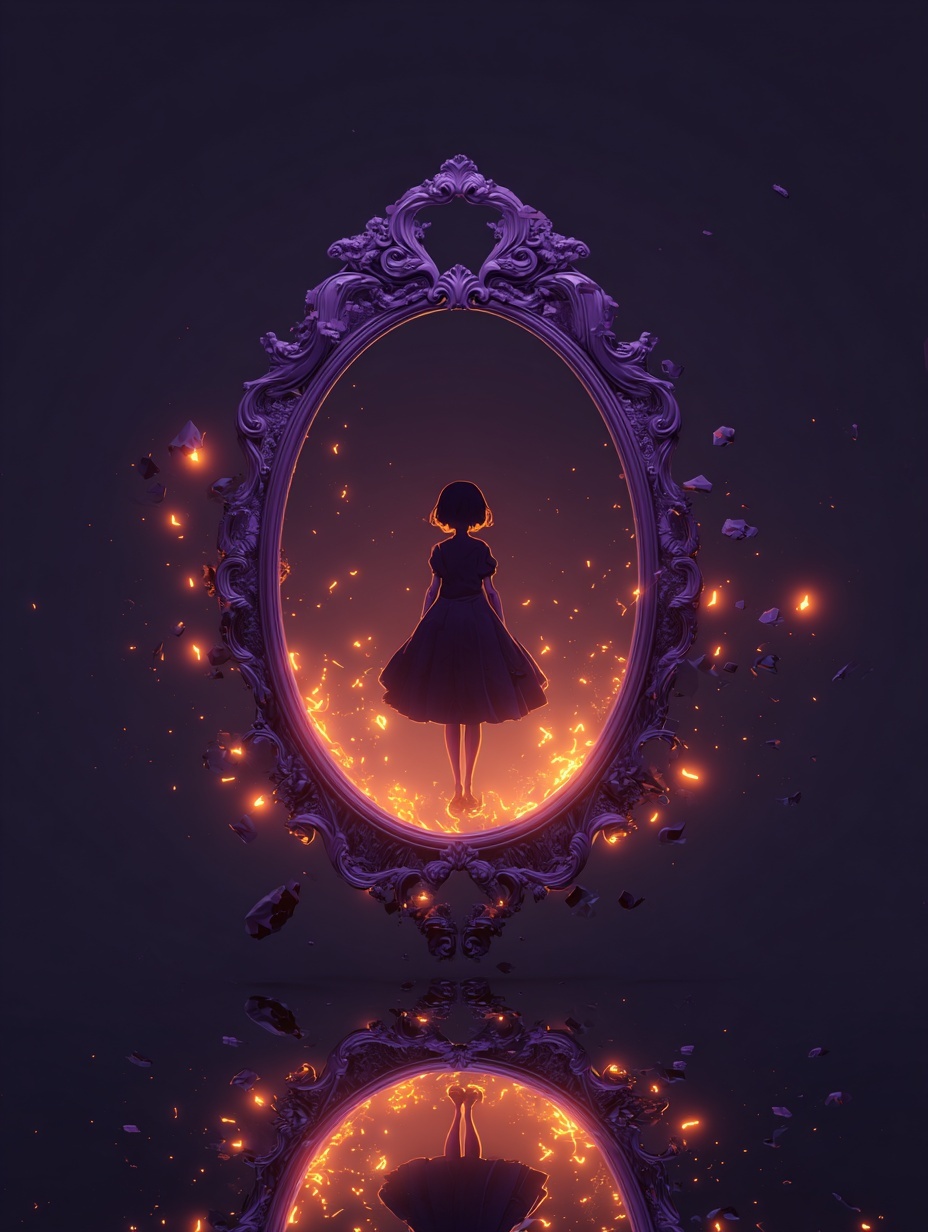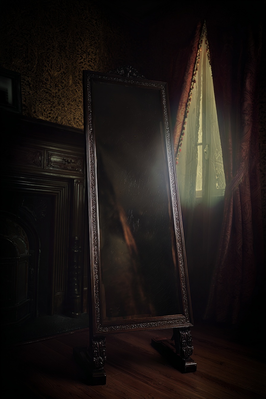 The Parting Mirror is never found by those who are looking for escape. It appears instead in lives that are already complete by most measures, lives that look finished from the outside and feel quietly unfinished from within. It stands in rooms meant for contemplation rather than protection, places where people come to think, to remember, or to convince themselves that what they have is enough. The mirror does not feel invasive. It feels patient, like something that understands how long it can afford to wait. To look into it is not to witness spectacle, but to recognize a familiar ache rendered gentle. The reflection shows a life that unfolded with fewer sharp turns, a sequence of days where loss never quite took root. Nothing about it is extravagant. It is smaller than fantasy and heavier than hope. The sadness comes not from what is missing, but from how easily it all seems to fit together. The viewer is left with the quiet realization that this life did not require heroism or sacrifice. It only required being elsewhere when one moment went wrong. Time inside the mirror does not pause to be observed. It moves forward with or without attention, indifferent to the gaze that follows it. People within the reflection laugh, argue, grow older, and make plans that will be kept. They do not look back. The life continues in a way that feels profoundly unfair, not because it exists, but because it does so without asking permission. The mirror offers no commentary. It allows the viewer to sit with the knowledge that this version of the world was always possible. The decision to reach out rarely feels dramatic. It comes after long stillness, after the moment when longing stops hurting and starts to feel practical. The surface yields without resistance, cool and calm, like a boundary that was never meant to be solid. There is no sense of departure, no final heartbeat to mark the change. One moment holds a person shaped by years of memory. The next holds only the room and the mirror standing quietly where it always has. What remains behind is not ruin, but absence woven into daily life. Friends speak names that no longer answer. Projects wait for hands that will never return. Love becomes something unfinished rather than lost. The sadness here is not loud enough to demand explanation, only persistent enough to linger. The world continues because it must, carrying the shape of someone who chose a different version of themselves over staying. In the life beyond the glass, there is no such lingering. The mirror is careful. It delivers its gift without leaving a scar. The person who arrives is greeted by a world that already knows them, already trusts them, already loves them. The sorrow that once defined their choices is gone, replaced by a sense of quiet belonging. The tragedy is that it all feels deserved, as though happiness itself were proof that the choice was right. The Parting Mirror is feared not because it is cruel, but because it is gentle. It does not demand a soul or extract payment in blood. It offers a life where grief never quite happened and asks only for agreement. In that moment, it poses a question that has no correct answer. Whether it is better to endure a world shaped by loss, or to step into one where everything feels right, knowing that somewhere else, the sadness you avoided will still remember your name.
