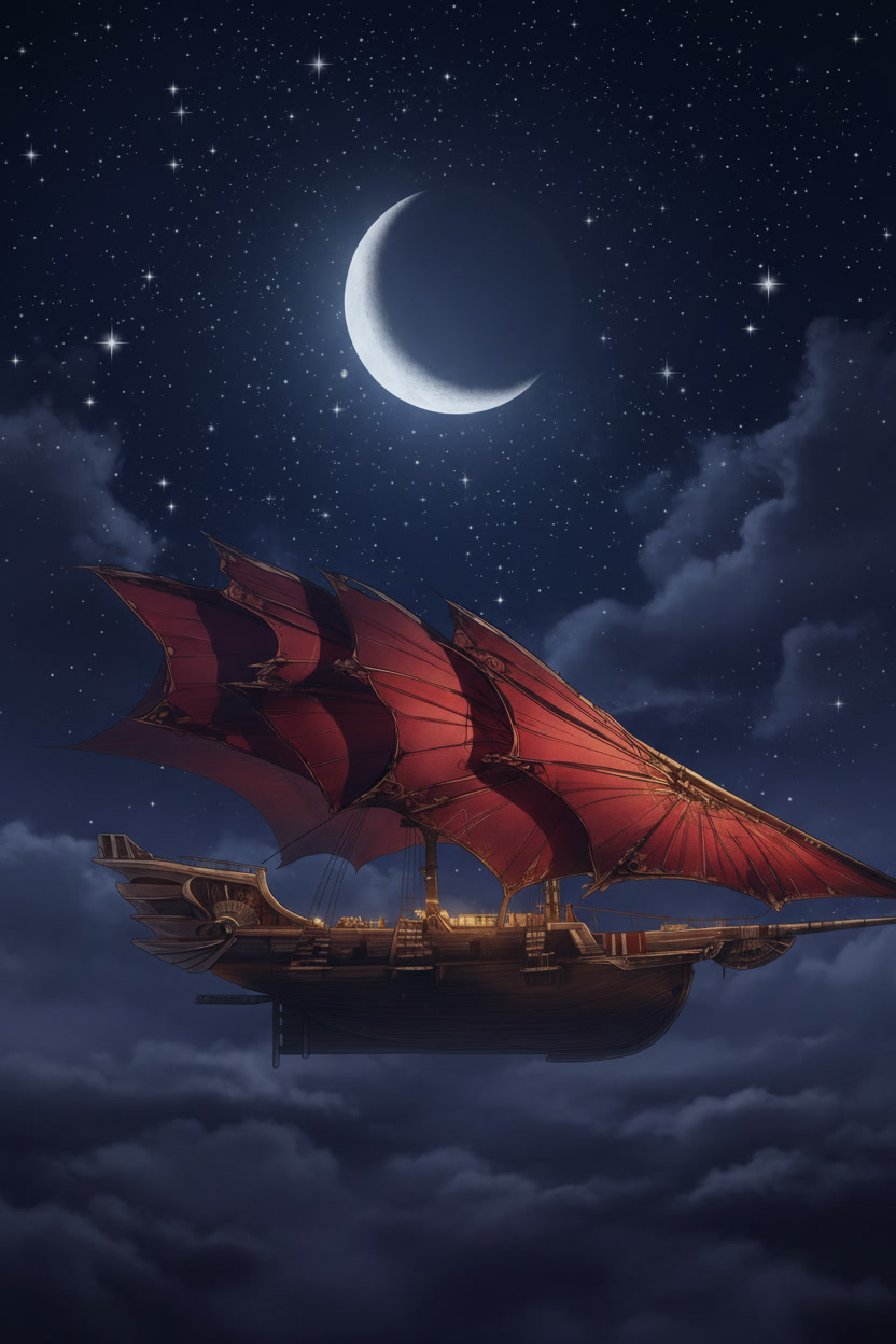 The Stormrider began its life far from Aerith on a world that no longer exists. It was born in the vaulted shipyards of Kasheal as a fast scout vessel for the Nisar Imperial Navy, a craft shaped by a culture that prized beauty as much as precision. Every curve of its hull carried the quiet arrogance of a people certain their work would endure for ages. That certainty died with the planet, but the ship survived through chance and theft and one desperate escape. To most who encounter it, the Stormrider appears too graceful to be real. Its bow tapers like a blade drawn from scabbard. Its deck lines flow with the easy confidence of a vessel shaped by artisans who believed beauty was a form of discipline. The strange upper sails lie in smooth arcs across the spine of the ship, each curve precise and intentional. Nothing about it speaks of haste or compromise. It looks like a craft built by a civilization that had time for perfection. For Dartimen Silvernight and Brimstone Steelhammer, the Stormrider is not remembered for its beauty. They found it at the end of a dying world as the sky folded in on itself and the land crumbled beneath their feet. Brimstone dragged the broken and bleeding thief through the wreckage of a doomed capital and forced open the sealed ramp of a ship that had never been flown. The vessel responded as if it had been waiting. It rose through collapsing towers while the last fires of Kasheal reached toward the stars. That escape marked the birth of its name. Stormrider. A word carried on their breath as they fled. A word shaped by terror and awe and the terrible clarity that comes when everything behind you has already been erased. For its crew the ship is not treasure or trophy. It represents the moment their lives split into before and after. It is the line they crossed and never looked back from. To outsiders the Stormrider is a problem that keeps returning. It does not obey the limits of the world. It does not creak or complain like other ships. It does not lumber through turns or struggle against altitude. It moves with unsettling quiet and startling intent. Sailors whisper that its shadow appears in places no chart recognizes. Captain reports claim it outran storms that should have dragged it into the sea. Dockmasters swear it arrives with no warning and vanishes before their clerks can blink. The ship carries an aura of contradiction. It looks fragile but endures punishment that should crack its frame. It feels small from the outside yet holds more life than its boundaries suggest. It carries the marks of a military craft yet feels alive with the improvisation of smugglers and thieves. The more people try to understand it, the more it defies understanding. It is a relic of a culture whose craftsmanship died before Aerith ever learned its shape. Life aboard the Stormrider is shaped by motion rather than space. Every corner of the vessel breathes with the presence of the crew. Their laughter echoes along polished corridors. Their arguments settle as easily as old dust. Their victories stamp themselves into the grain of the wood. The ship has become a place where misfits and wanderers find something close to belonging. It is not a grand estate nor a noble house. It is a place built on shared purpose rather than walls. Those who board it for the first time feel a strange sense of crossing a threshold. The world outside does not follow the same rules once its deck settles beneath their feet. The Stormrider carries the faint memory of Kasheal in its bones. A quiet hum in the air. A breath of distant storms. A sense that the vessel remembers the moment it escaped death and refuses to let that memory fade. Every port knows its silhouette. Every border patrol knows its name. Stories move faster than sails. Reports of narrow escapes and impossible approaches weave through taverns and court chambers alike. None of them agree on the details. All of them agree that the Stormrider refuses to be caught. It has slipped through naval traps. Evaded sky bans. Stolen treasures no vault could protect. For Dartimen and his crew the Stormrider is more than a means to travel. It is home in the most complete sense of the word. It is the one place where they are not hunted or judged. It is the one place where every argument has room to settle and every loss has room to breathe. They do not worship it. They simply trust it. And for a ship forged in the final minutes of a dying world that trust is the closest thing it has left to a legacy.