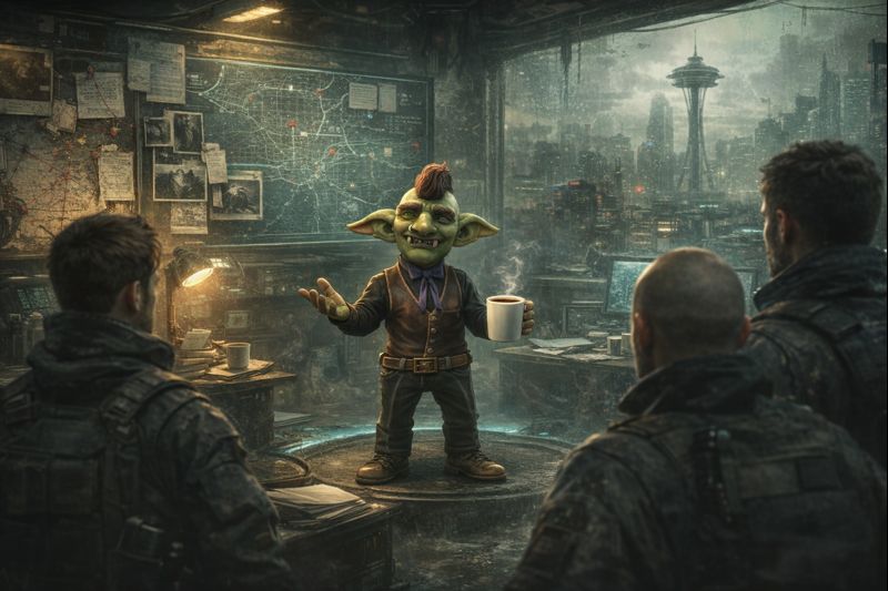 This adventure is a guided introduction to Urban Arcana and the hidden world beneath Seattle’s streets, made for new players and first-level characters. The whole session takes place in Department 7 Headquarters, where Greevil Toothbreaker leads an informal tour. Through his stories and comments, players get to know the Shadow Investigations Unit, its culture, and its people. There are no enemies or threats here. Instead, the party can watch, ask questions, meet a few NPCs, and get used to the game’s tone, rules, and mysteries. The main goal is to give both players and the GM all the key information in one easy moment, helping everyone build relationships, set expectations, and feel like they belong. The adventure ends quietly, with Greevil giving out apartment keys and sending the agents off with some encouragement and a hint of good luck, as their real investigations are still to come.