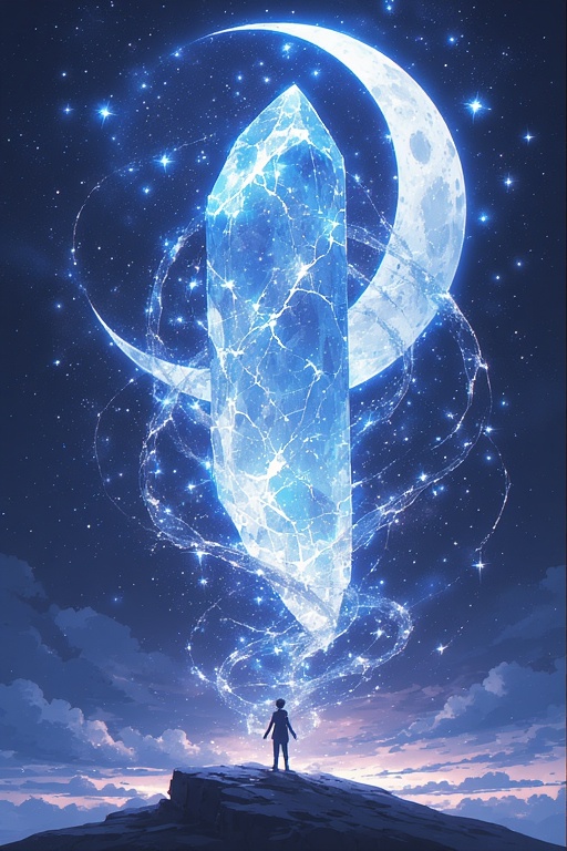 A dagger forged from solidified twilight, its blade a deep, shifting darkness that seems to hold captured starlight within its depths. A full moon-shaped moonstone is set into its hilt, cool and luminous, reflecting the silent wisdom of the night. It feels ancient and imbued with secrets.