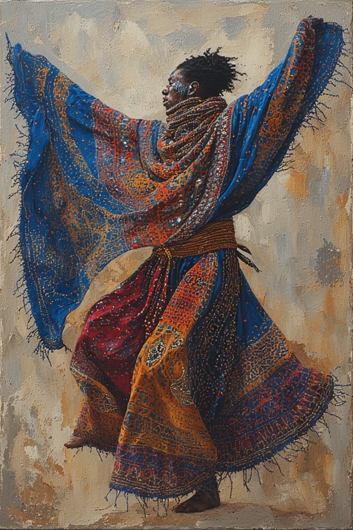 The Ancestral Shrouds are the ceremonial garb donned during the vibrant dance of remembrance. These are not mere garments but intricate tapestries woven with the stories of lineage and the sacred journey of the soul. Crafted from materials that have been passed down and imbued with the echoes of past generations, the Ancestral Shrouds are a testament to the enduring connection between the living, the departed, and those yet to come. Their patterns, a complex weave of symbols and colors, depict the winding path of life, the unity of the community, and the ultimate liberation of the spirit. To wear them is to embody the collective memory and hope of a people, to dance not as an individual but as the latest in a long line of ancestors.