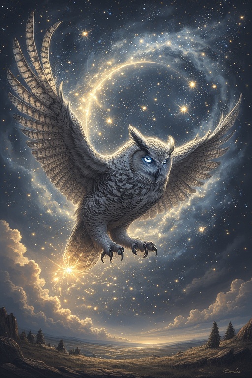 Owl: The Owl serves as Oneiroi's sacred animal, its silent flight through the moonlit sky and keen eyes piercing the deepest darkness mirroring his dominion over sleep and hidden knowledge. The owl embodies wisdom, vigilance in stillness, and the ability to perceive truths that elude the waking world. Its presence signals a transition into the realm of dreams and introspection, where secrets are revealed and the subconscious finds its voice.