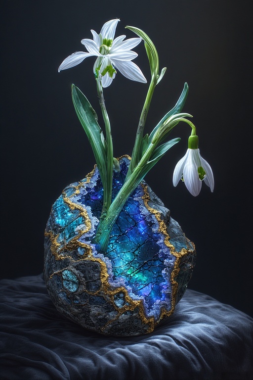 Snowdrop: The Snowdrop, a delicate harbinger of spring emerging from winter's grasp, symbolizes Oneiroi's connection to the dormant, yet resilient, aspects of life. It represents hope found in stillness, the quiet beauty of the frozen world, and the promise of renewal that lies beneath the surface. Its purity and gentle emergence speak to the peaceful transition into slumber and the hidden strength that endures through dormancy.